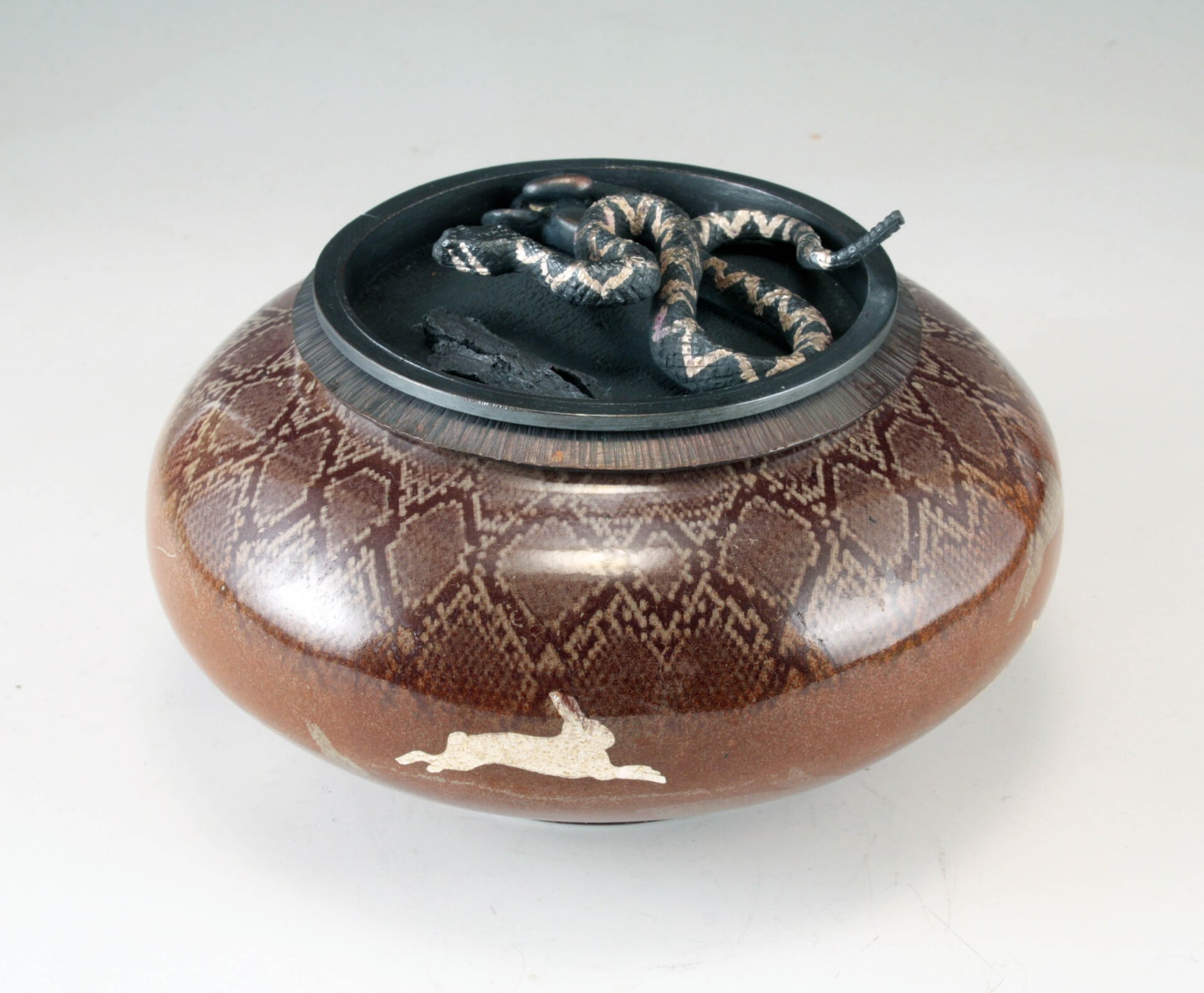 Enameled copper lidded vessel. The artist's interpretation of Homer's Odyssey in ten vessels.