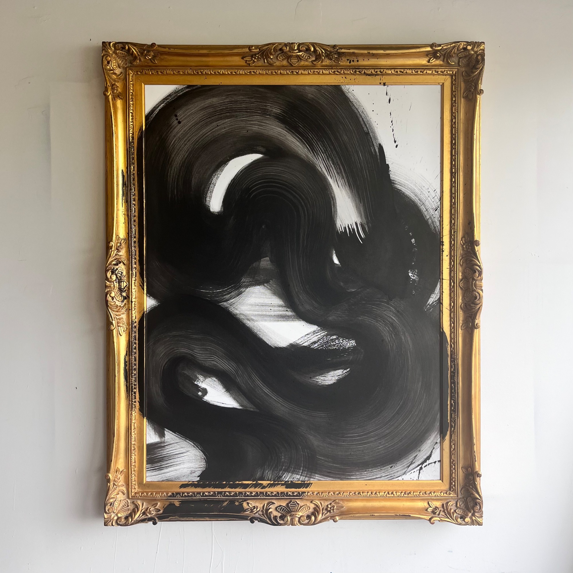 Artist Statment: This is Daisy-Anne’s largest antique framed abstract, to date. “Learning to Breathe” explores the most difficult moments in life, where we are reduced down or forced to start all over again, from nothing. We are learning life all over again, in a new and different way. Like all of Daisy-Anne's work, there is an over arching interplay with the idea of boundaries and boldness, while juxtaposing elements of old and new.