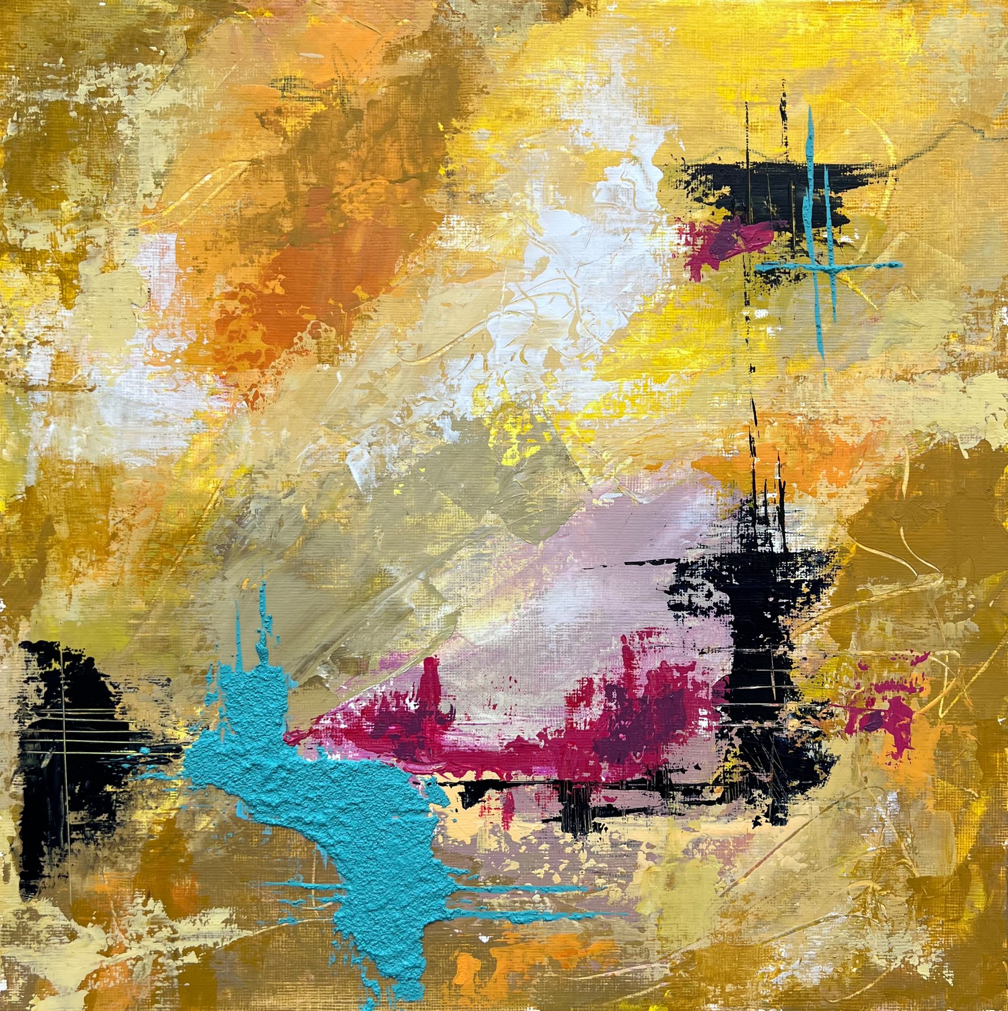 Acrylic on Canvas Paper, texture medium and pastels