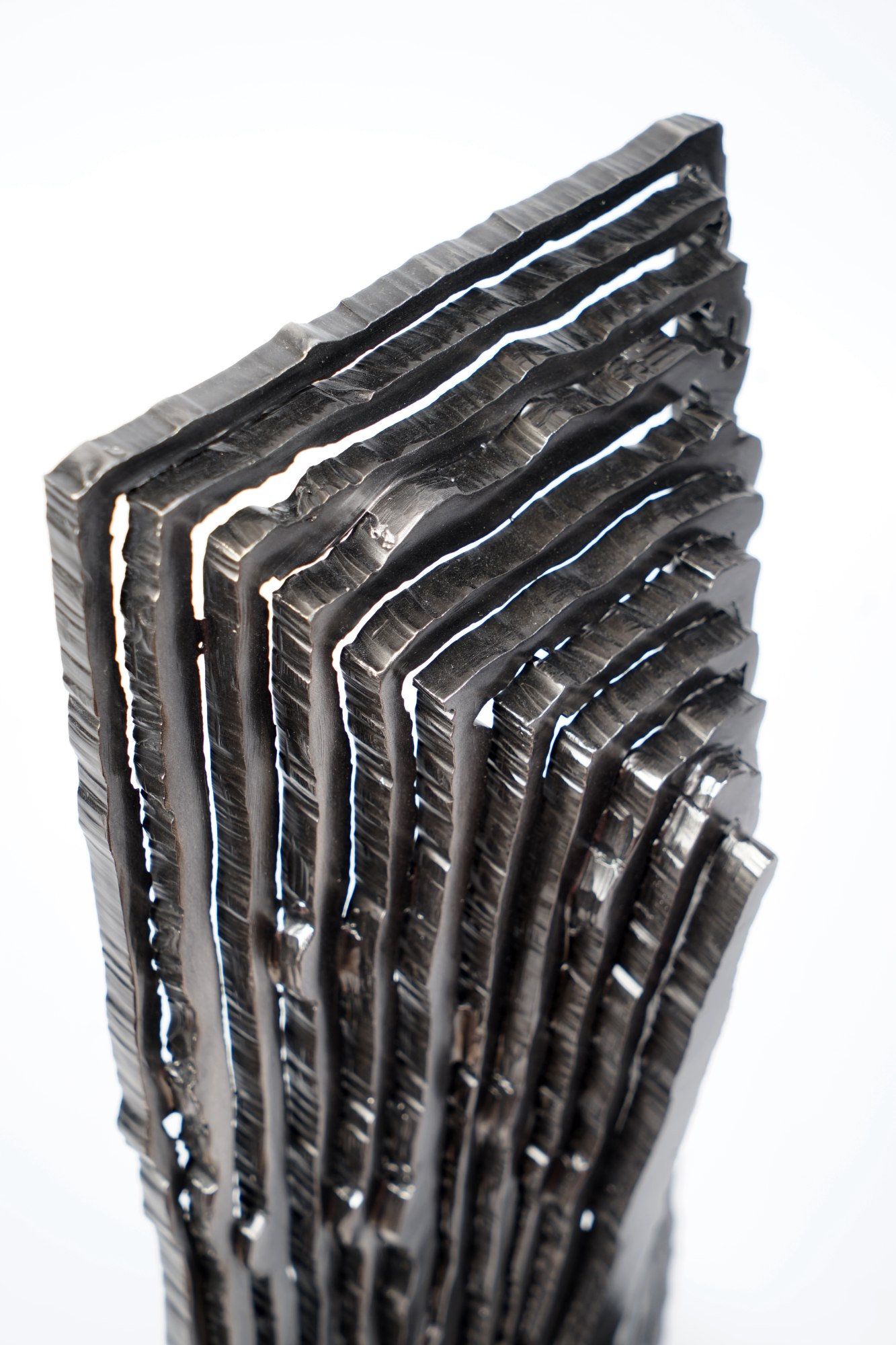Visually light when viewed face on and imposing when viewed from the side, the heavy mass delicately balances itself on one edge.