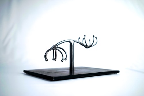 It is a model for a public work ideal for a play structure. One can climb on it, or hang from the inside and view nature from a different perspective. A conceptual work exploring negative space in 3 dimensions.