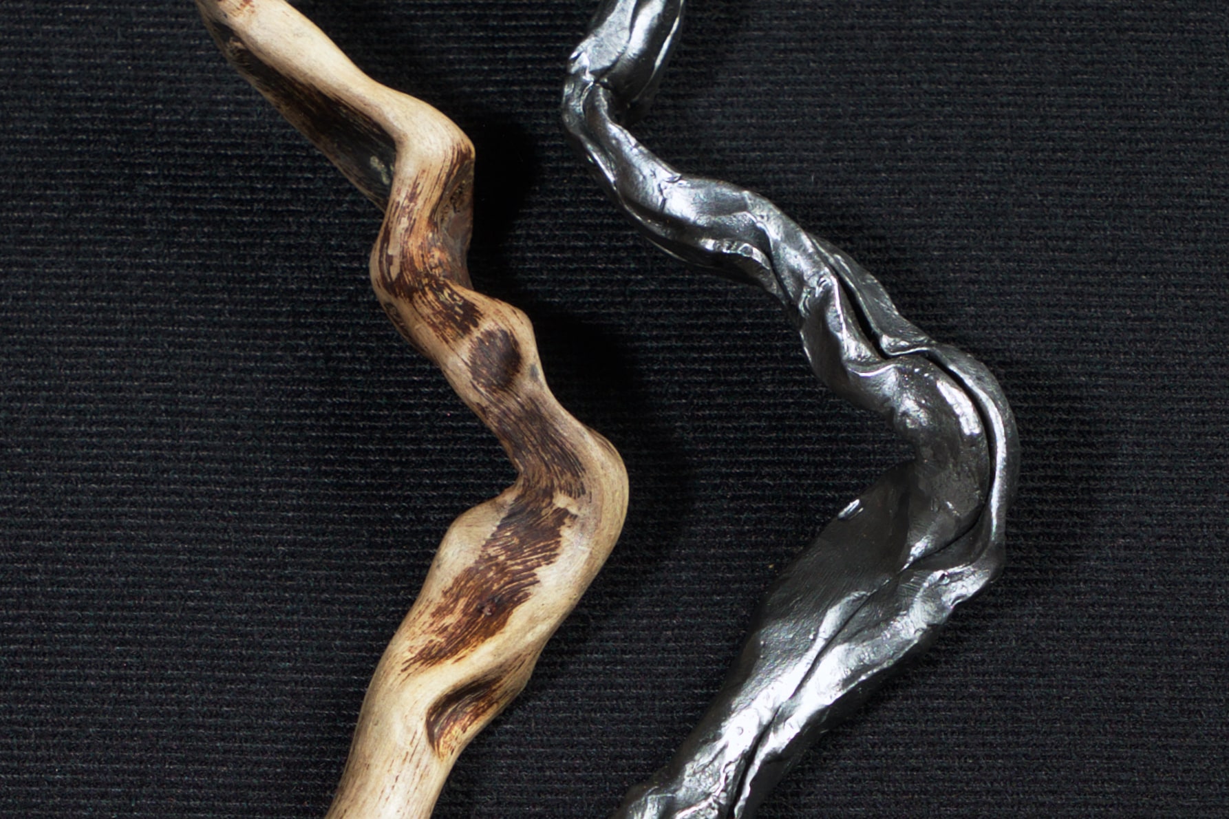 A series that explores the anthropomorphic relationships created between object ‘couples’. Naturally-formed driftwood is juxtaposed with mechanically created, manually-formed steel ‘simulacrums’ allowing the two elements converse and create stories all their own.