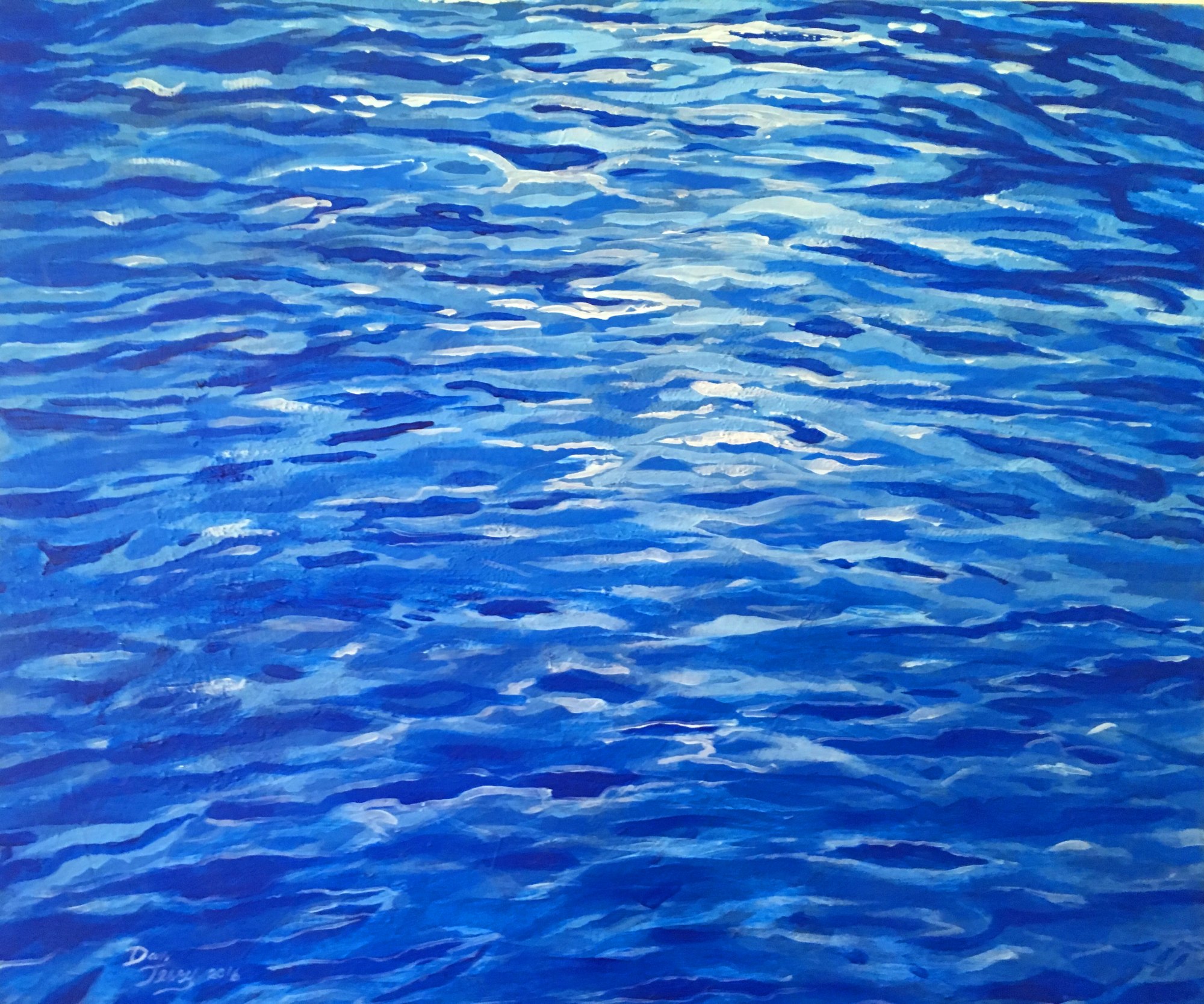 Blue Waves depicts the ever moving energy of water expressed in waves rippling on the surface and reflecting the wavelengths of light playing off the surface . This work was exhibited at the Windscapes exhibition and following the devastation of Hurricane Harvey in Houston, the work was donated to the charity fundraising effort sponsored by the artist's musical friend and colleague Will Taylor of Strings Attached, a long time musical ensemble based in Austin, TX. Current owner and location of the work is unknown following the charity auction.