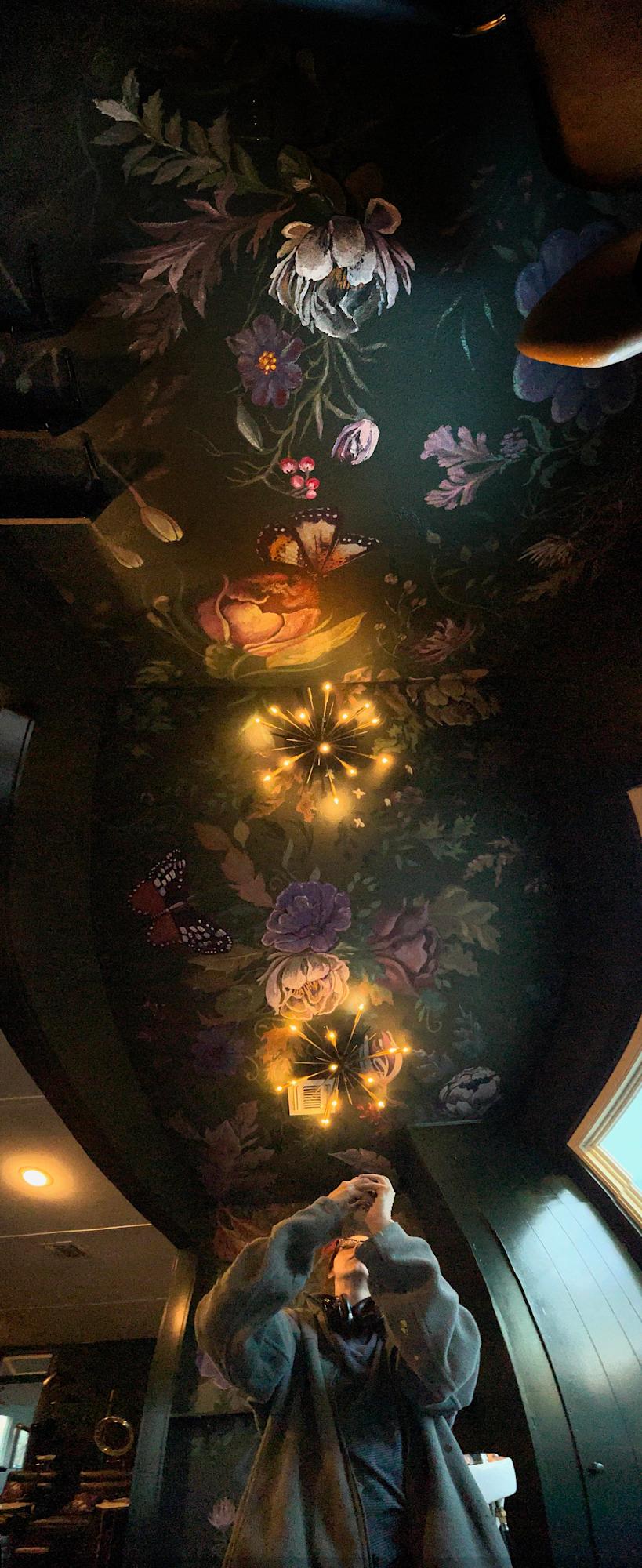 Commissioned for Tryst Salon in Boerne as a mood enhancer in the shampoo area of the upscale salon. Based on French style Romantic tapestries of the late 1800s
