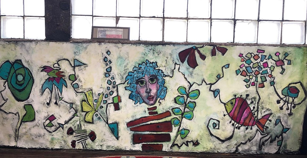 This totally made my soul happy...every drawn detail...every brush stroke! A blank concrete wall in my studio, now a wall mural that makes me smile every time I look at it.