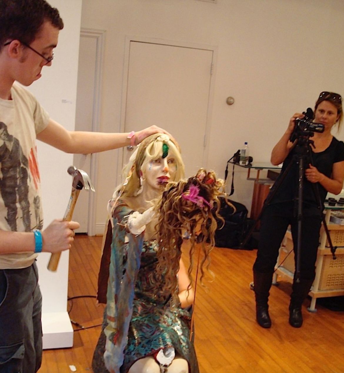 For “Alter Piece,” – an interactive performance – the public was asked to ‘alter’ a figurative sculpture using provided and found material. The sculpture, a realistic nude, was fabricated to a high degree of craftsmanship in order to foster both the natural interest humans have in each other and the sense the object was only to be regarded. While I am interested here in questioning the traditional relationship that usually stands between viewer, object, and artist — that the viewer should stand back and contemplate a completed piece — the primary function of the performance was to demonstrate how the self and others create reality.