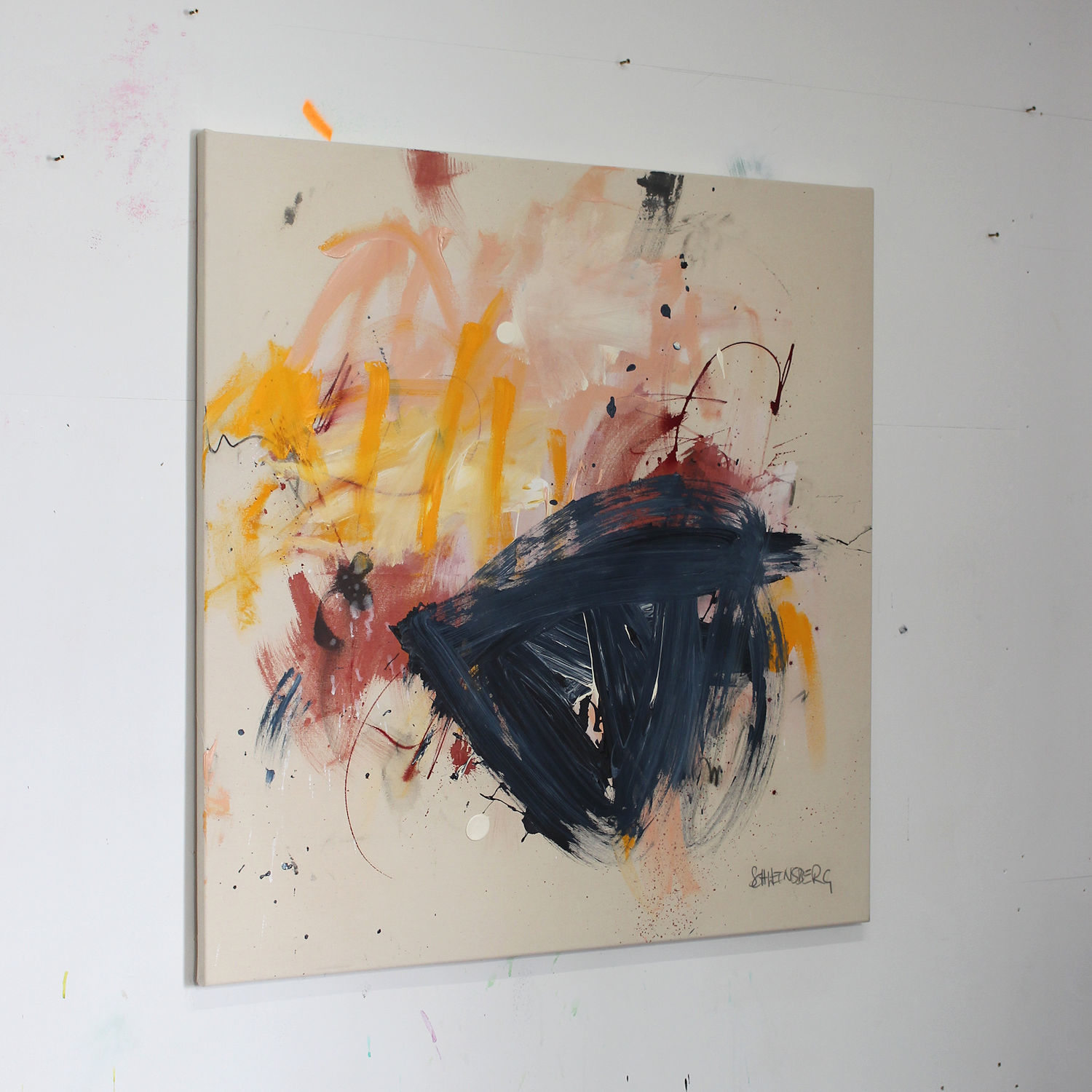 In this case, I revisited a color scheme and linework that had stuck in my mind from a painting from fall 2024 ("THIS CRAZY LIFE"). This one has clear echoes of that, but is lighter, airier, and has more space!