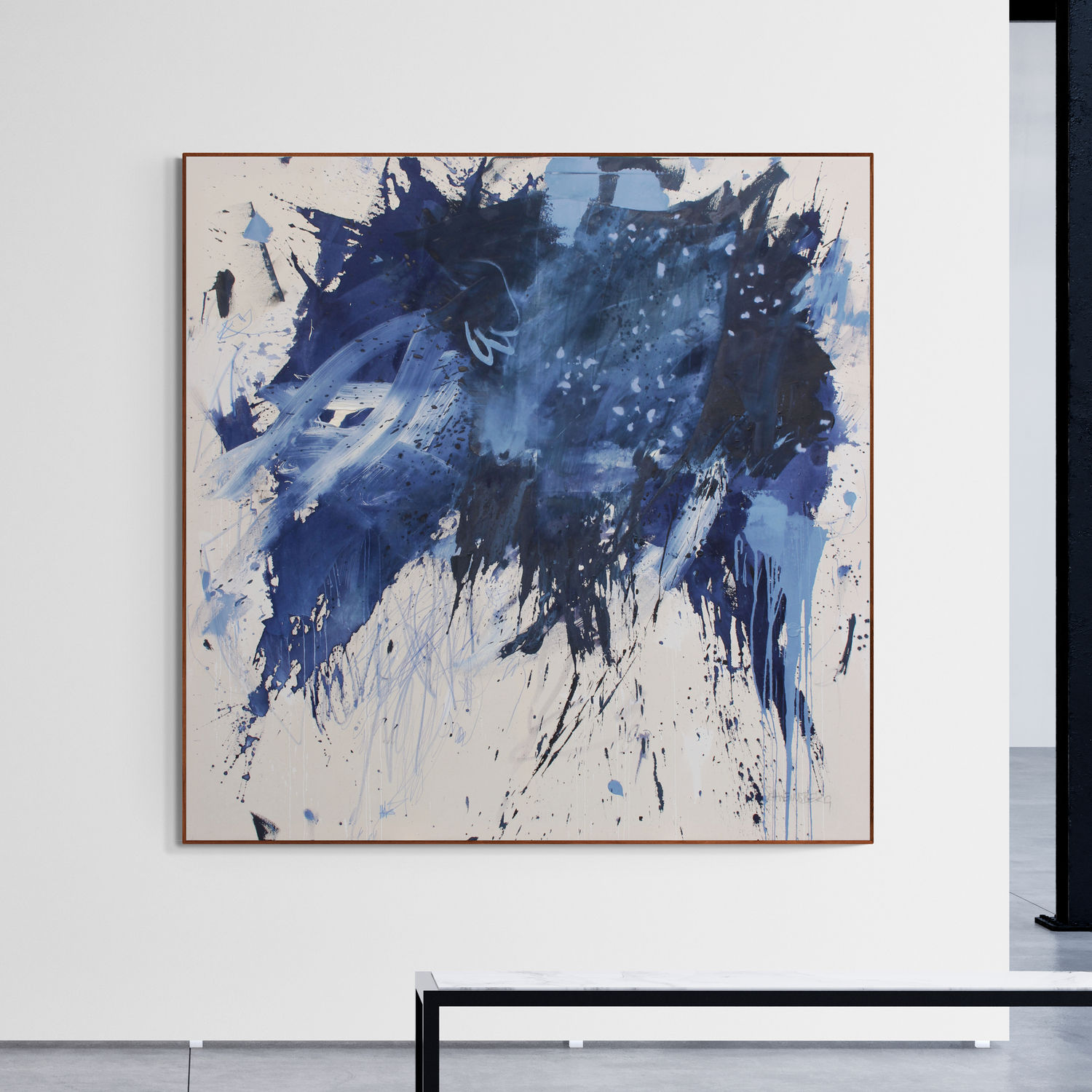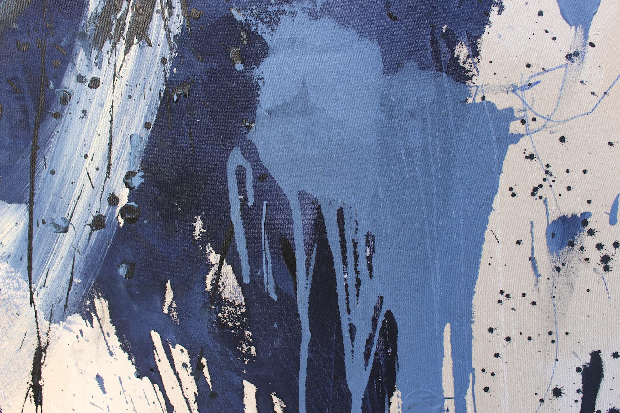 "MARINE LIFE (FREE FLOATING)" features a flowing composition and an organically inspired visual language. The carefully balanced palette of blues and turquoises, complemented by light accents and deeper contrasts, creates visual depth reminiscent of the transparency and movement of water.