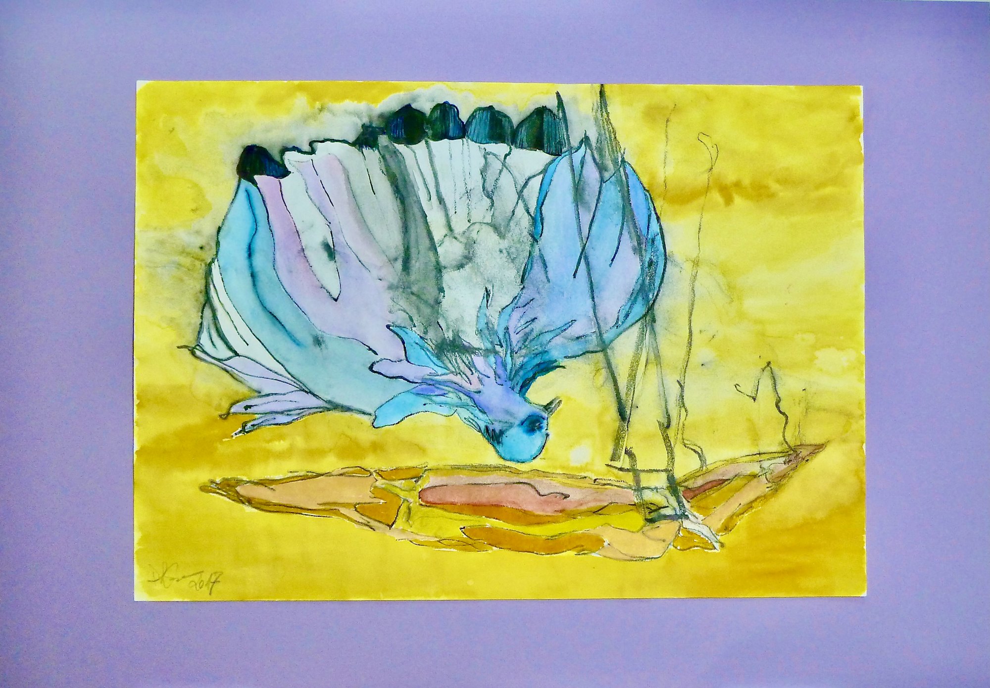 Therefore, it is important to note that the image is not displayed upside down; it is in its correct position. This contemporary figurative expressionist watercolour painting, with its exquisite figurative expression, offers a sweet, calming presence.