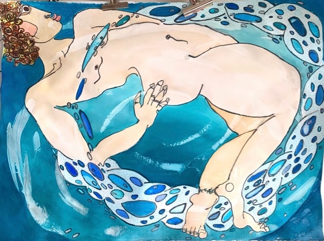 Figurative expressionism unique watercolour William Blake inspired.