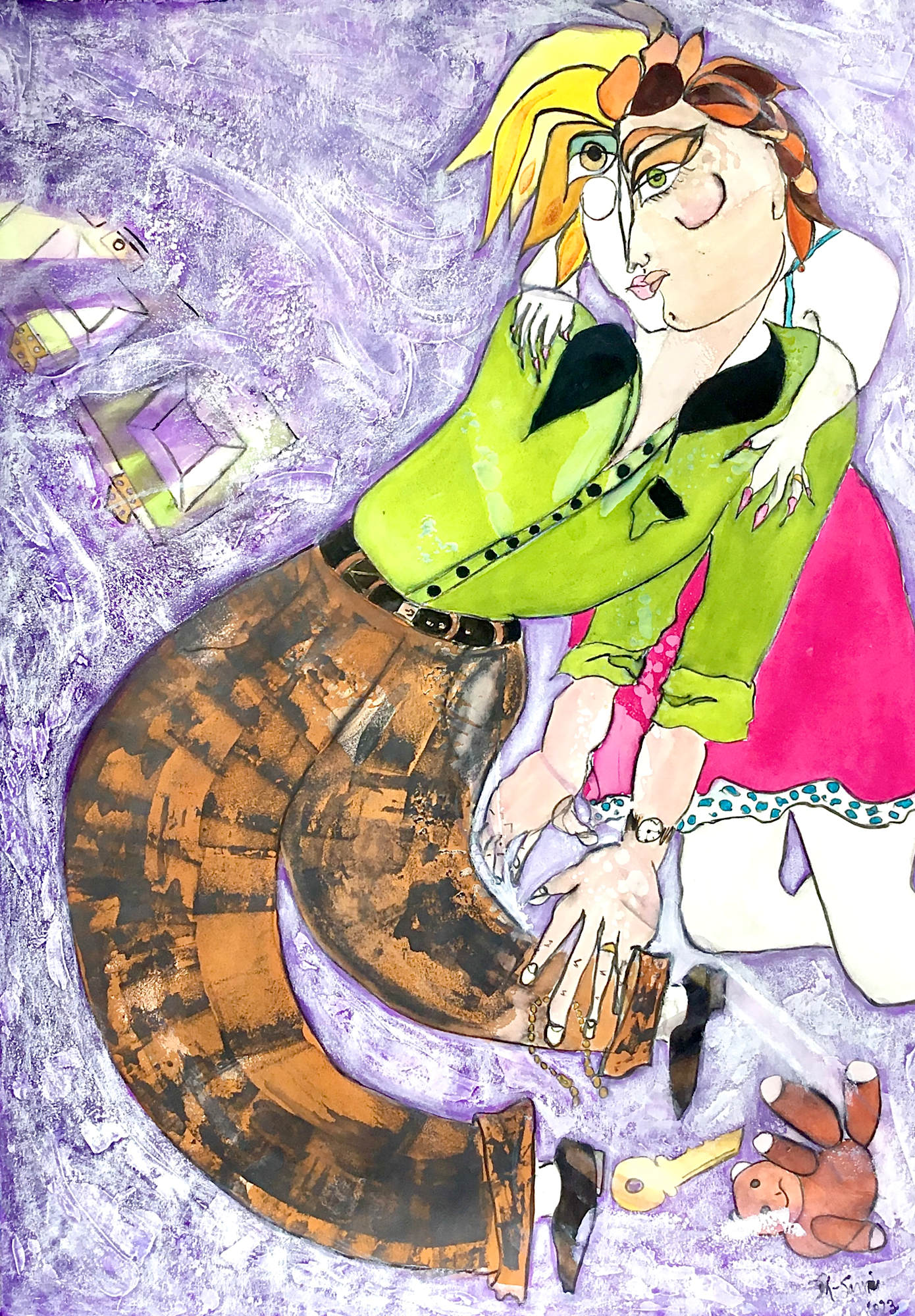 Discover the intricate layers of desire and manipulation in this contemporary figurative expressionist watercolour painting.