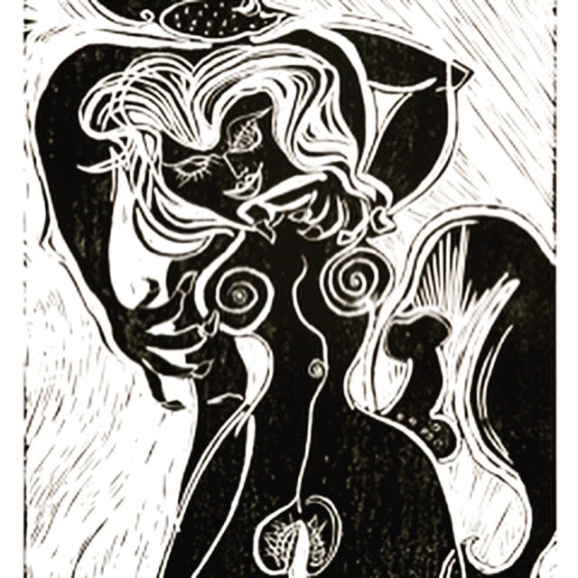 Je Djinn is an East Asian-inspired Lino Cut that captures the seductive power of legends and the whimsical allure of Djinns.