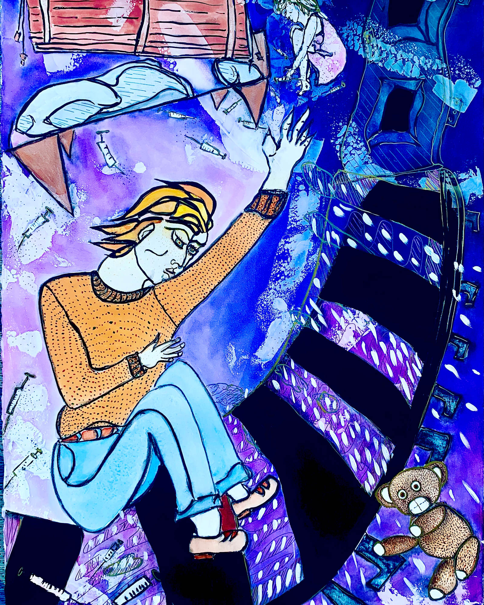 Original watercolour painting figurative expressionist style on cotton rag 300gsm Arches
