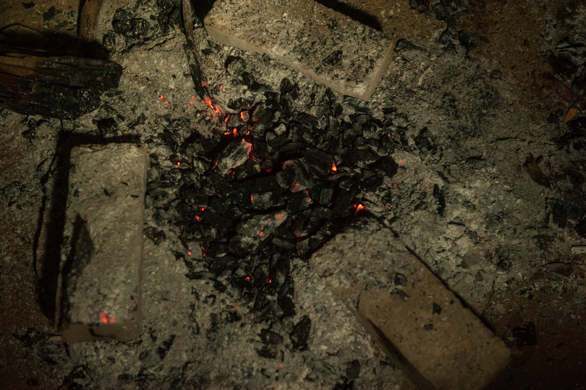 Leftover embers from the fire used to cook the meal at an afrometal gathering.