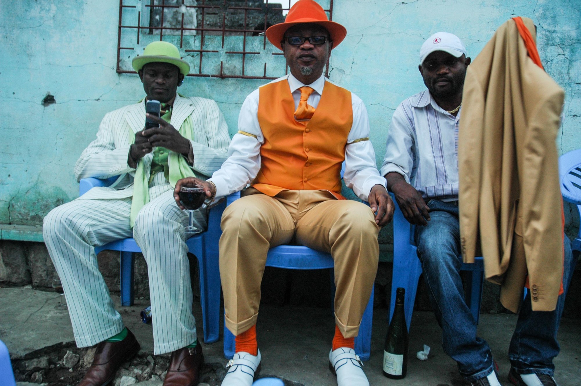 Unpublished photograph of Kvv Mouzieto (center) sitting with his brother (left) and a friend during a party. Brazzaville, Congo (2007)