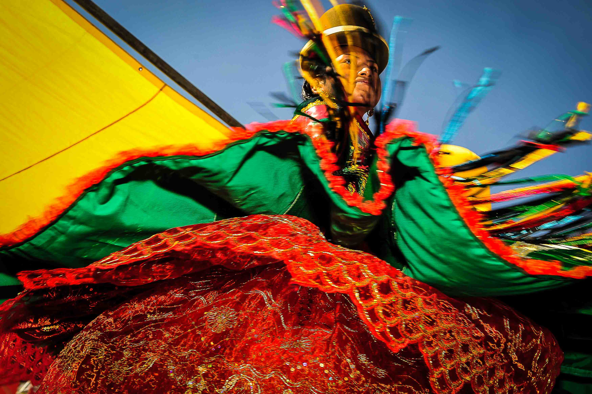 Cholitas dancing the morenada during the event of Miss Cholita 2010.