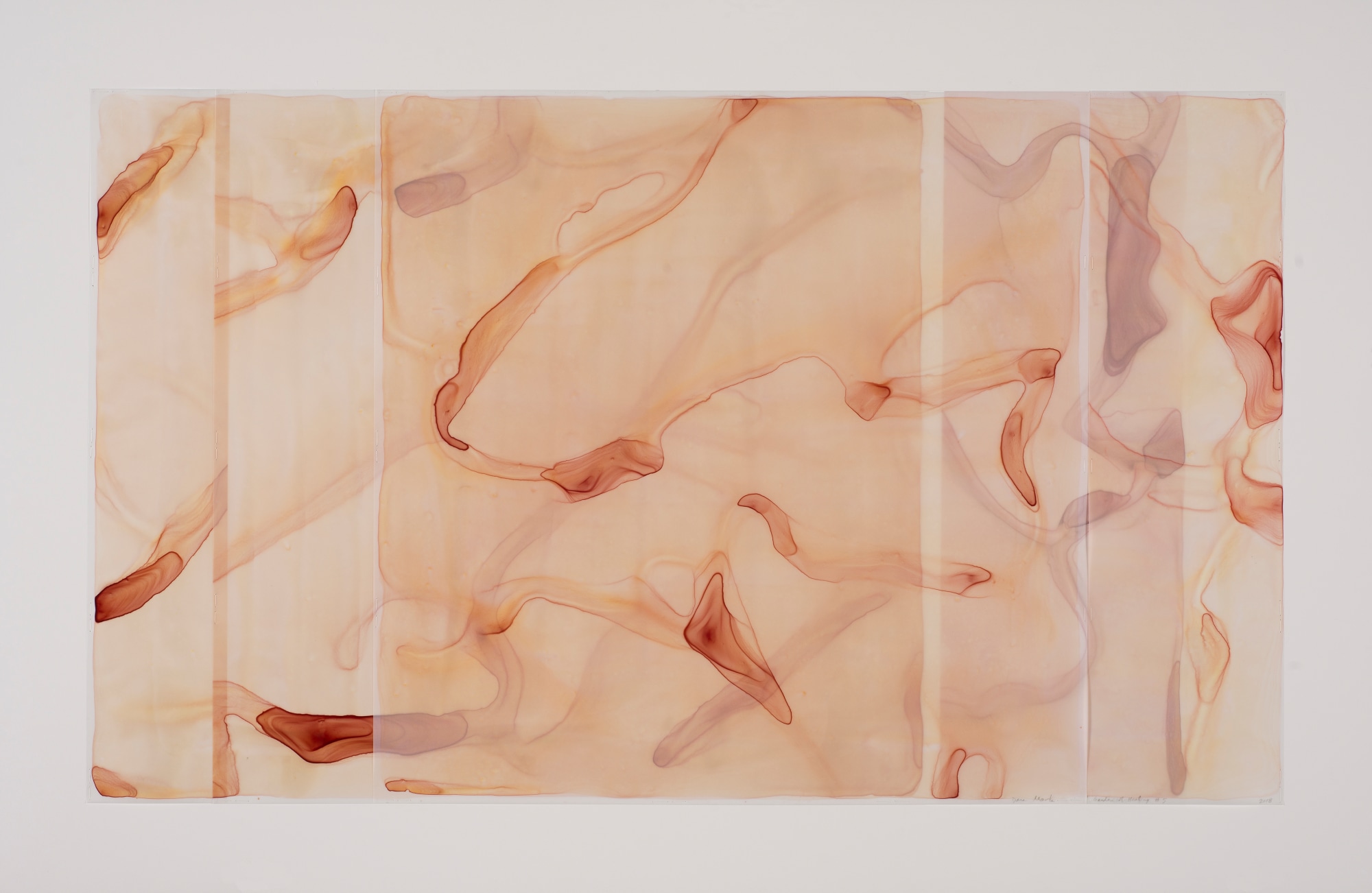 watercolor on layered translucent Yupo paper sewn to acid-free mat and framed in white-painted wood frame