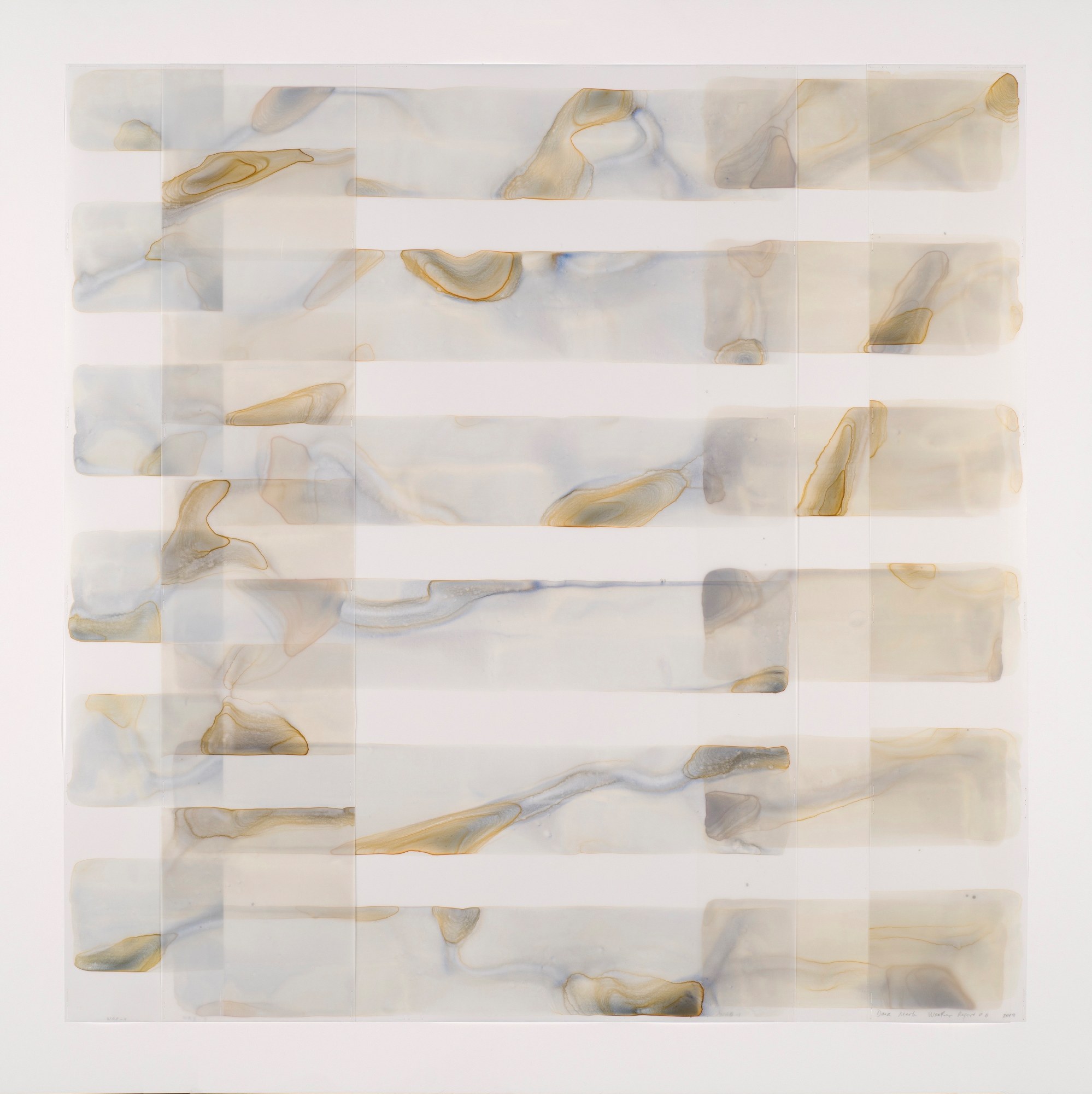watercolor on layered translucent Yupo paper sewn to acid-free mat and framed in white-painted wood frame