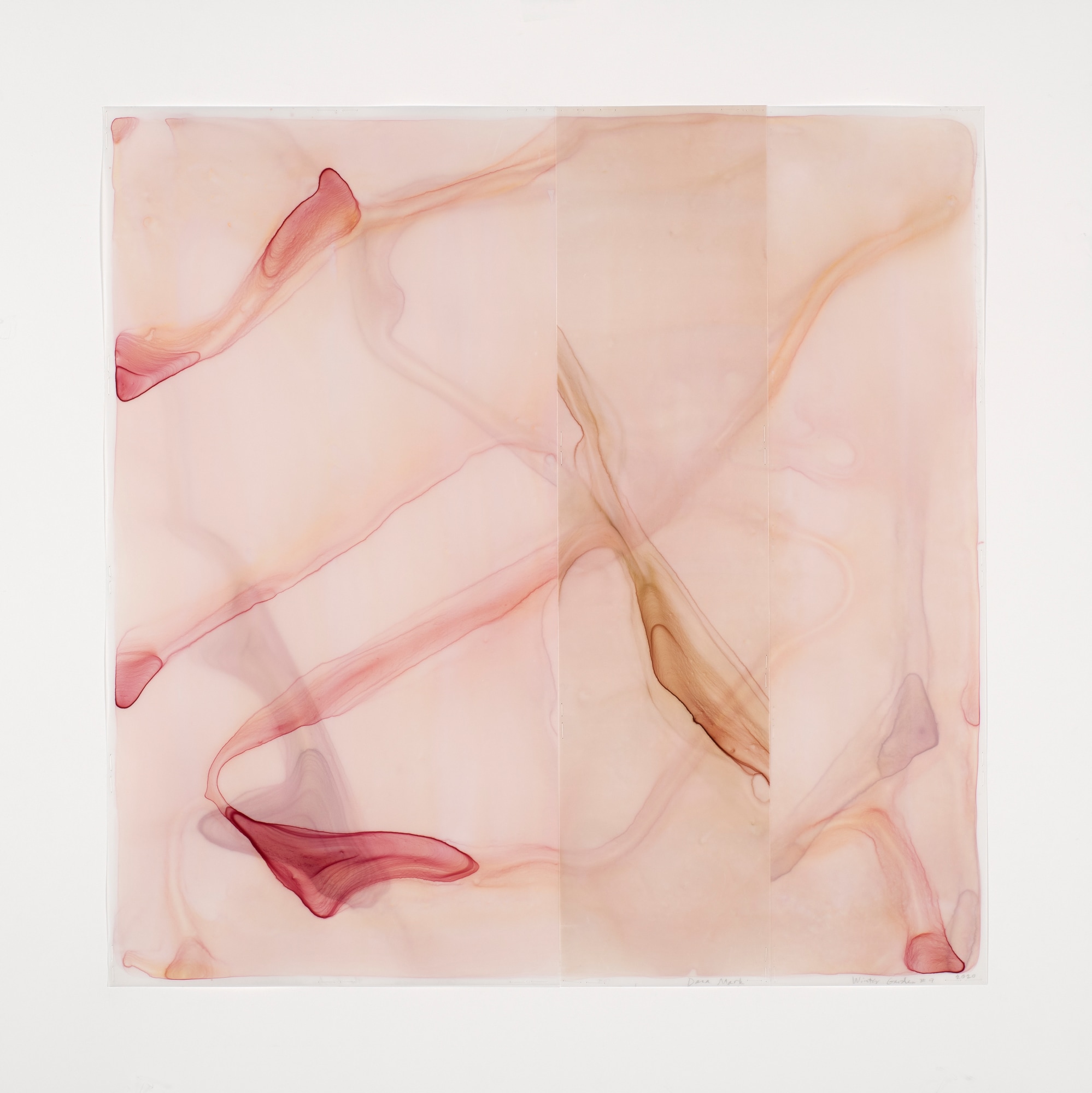 watercolor on layered translucent Yupo paper sewn to acid -free mat and framed in white-painted wood frame