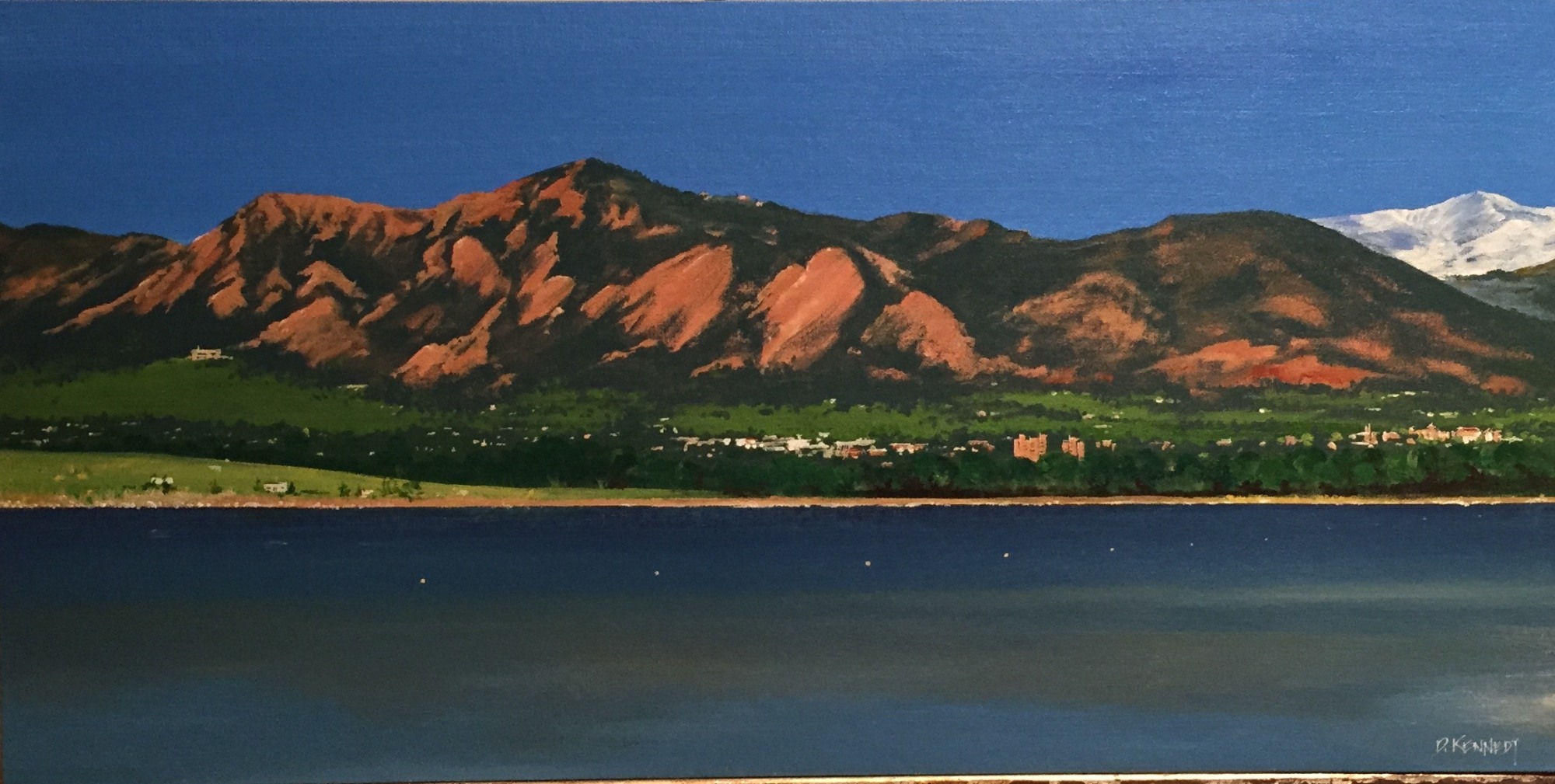 This is a classic view of Baseline Reservoir traveling West towards Boulder and the Flatirons. From this vantage point (Baseline Road and Westview Drive) you can see the CU campus and downtown Boulder, CO.