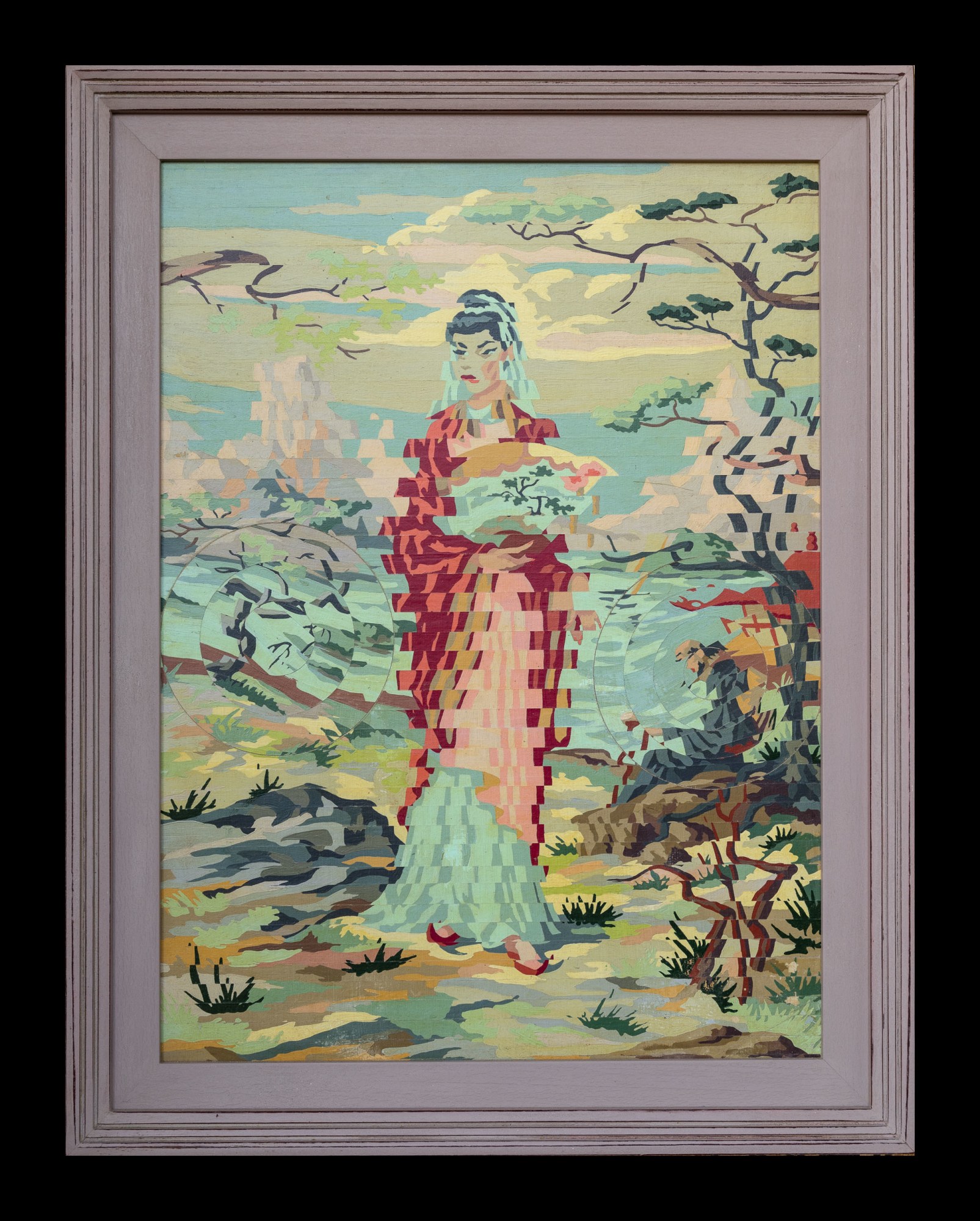 hand manipulated vintage PBN painting