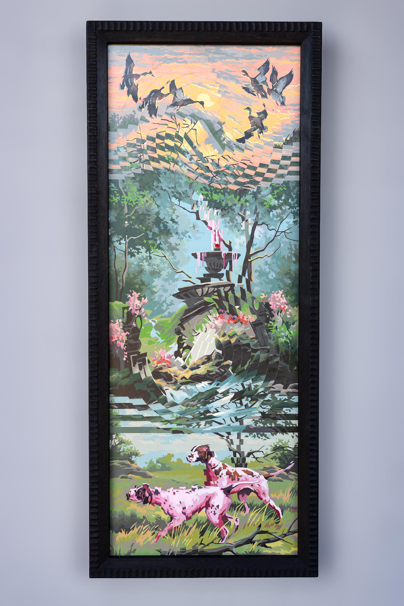 hand manipulated vintage PBN paintings, oil on paper. Artist made frame