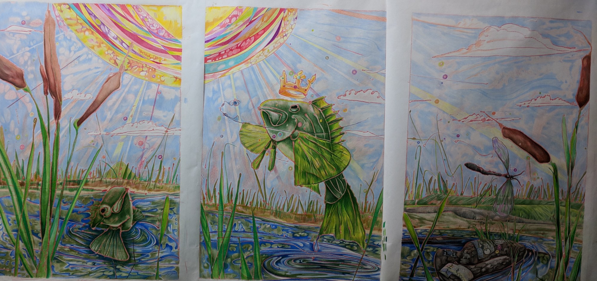 Color pencil and wax on paper. 3 panels. From the David Johnson series