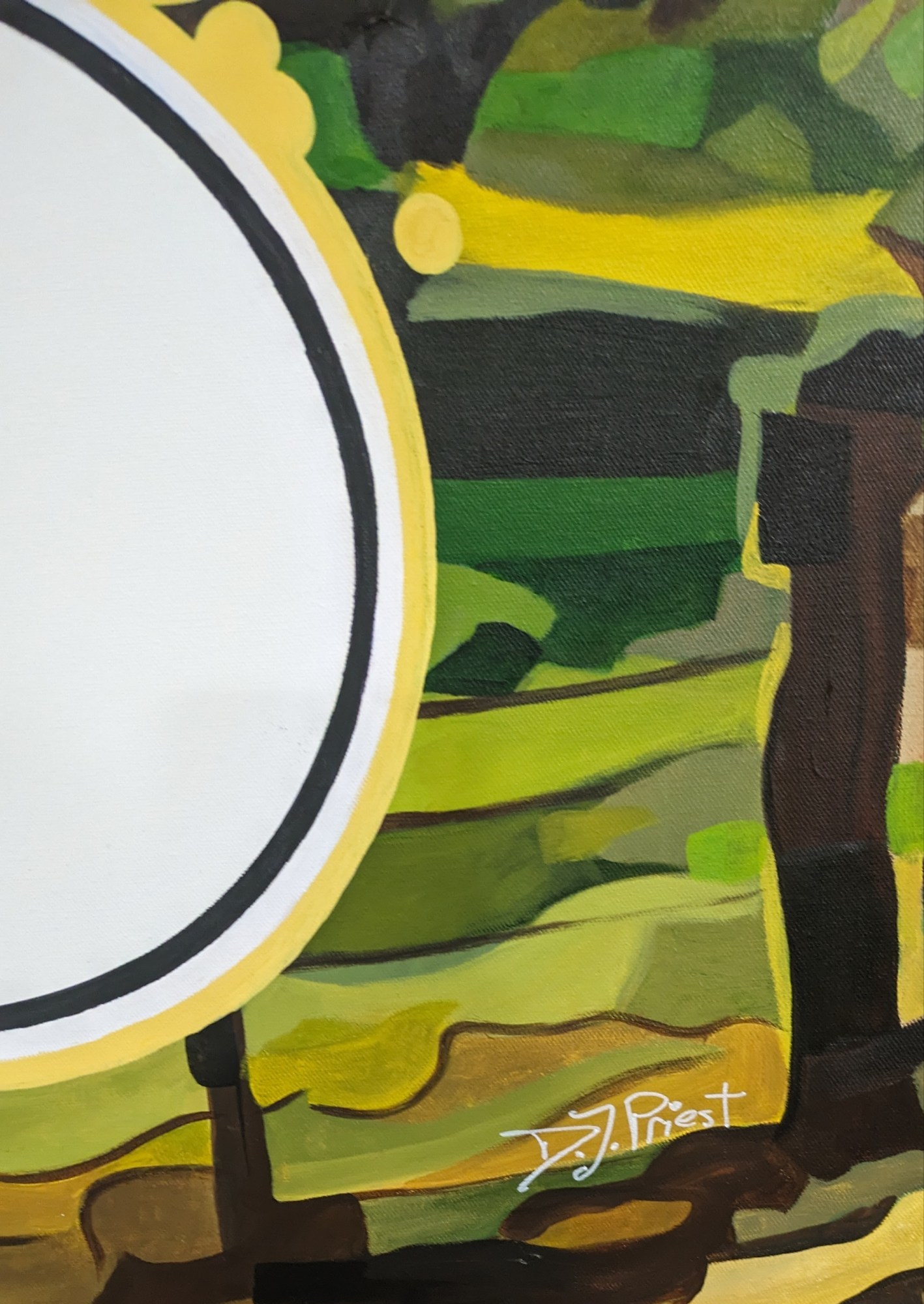 There are two first time occurrences with this powerful painting. This is the first time Heatwole's prayer warrior shows up in his ongoing shifting planes series. One notable aspect is the inclusion of the character "Dream thought in flight" under the clothes and product brand "This Artist's Dream." The title of this composition seems fitting.