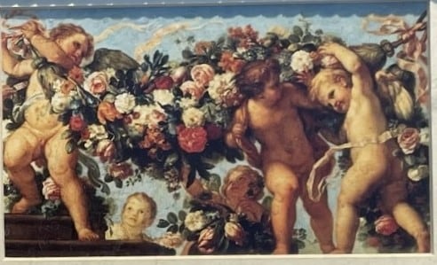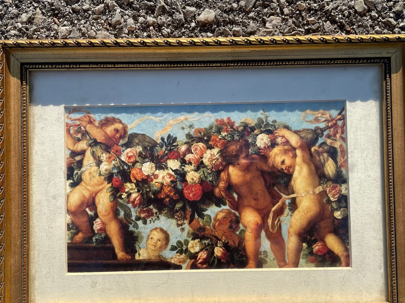 Amours et guirlandes de fleurs is a Print by Carlo Maratta (4"x 6.75") is a licensed reproduction that was printed on Premium Heavy Stock Paper which captures all of the vivid colors and details of the original. The print is framed and ready for hanging.