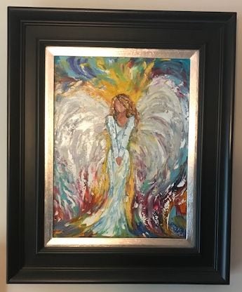 'Angel of Light' is an original oil palette knife painting on canvas creating a feeling of depth because of the heavy texture on ¾” thick gallery wrapped canvas. hand signed by the artist. A Certificate of Authenticity is included. Framed.
