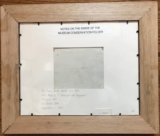 - Signature: Inscribed in plate, center l.: PRINCIPII DEL DISEGNO; below on book: FATTI Per SDB; l.l.: S.D. Bella inuent. et fecit