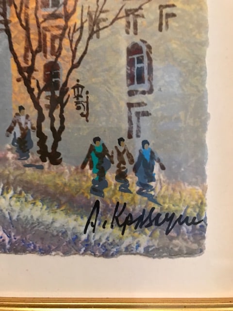 'Old Heidelberg Yellow Sunrise' is a serigraph on deckle-edged paper hand signed and numbered by the artist. This is in an edition of # 62/170. A Certificate of Authenticity is included. Professionally framed.