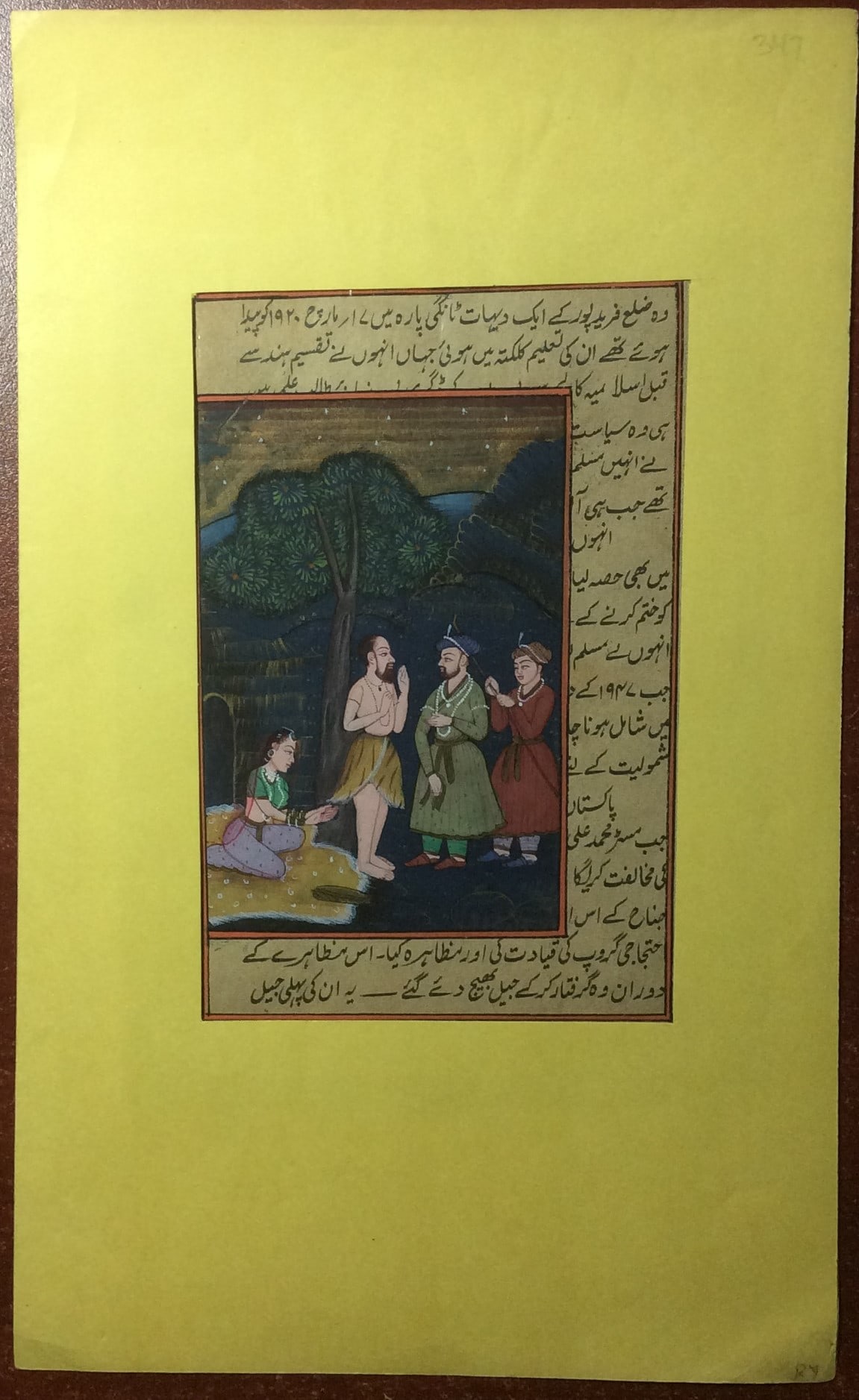 Persian Illuminated Manuscript housed in a museum protective display folder. The curators item number - ALb 58 - is hand written on the lower left verso of the folder. The location - R4-is on the lower right.