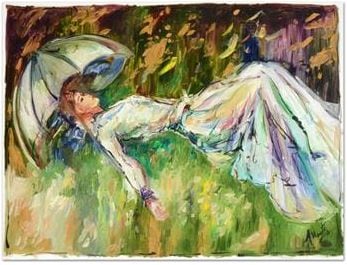 "Repose" is an original oil painting on canvas, hand signed and thumb printed by Marta Wiley! Includes Certificate of Authenticity! Measures approx. 23" x 17" (image).