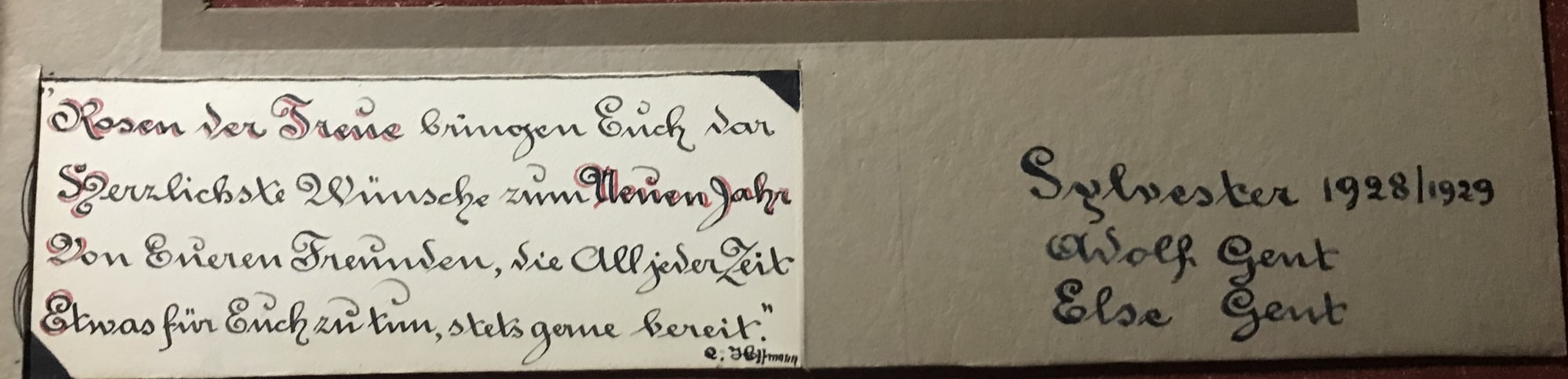 Beautiful watercolor 'Rose of Joy' signed Gent 1928. There is a hand written note on the bottom of the mat that translates closely to "Roses of joy offer you
