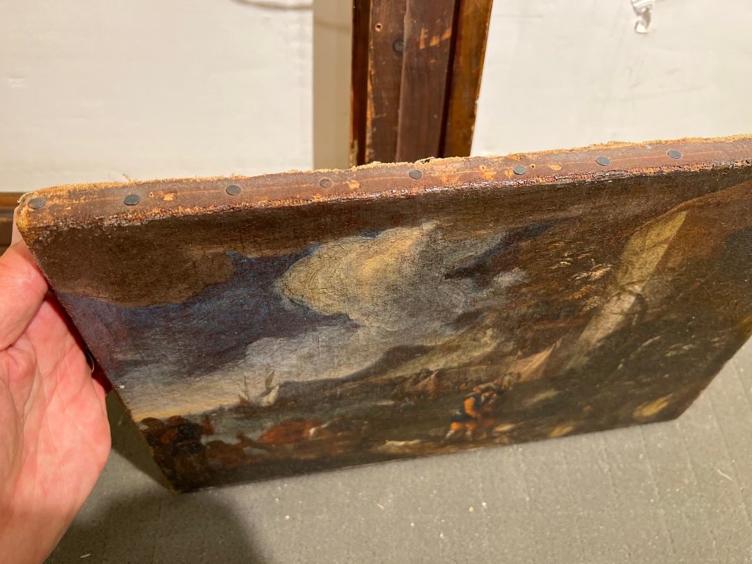 Purchased from Wiscasset Bay Gallery, Wiscasset, ME in 2017. This piece is thought to be by Dutch artist Adriaen Van Der Cabel (1631-1705). This piece is framed in an antique wood goldtone frame.