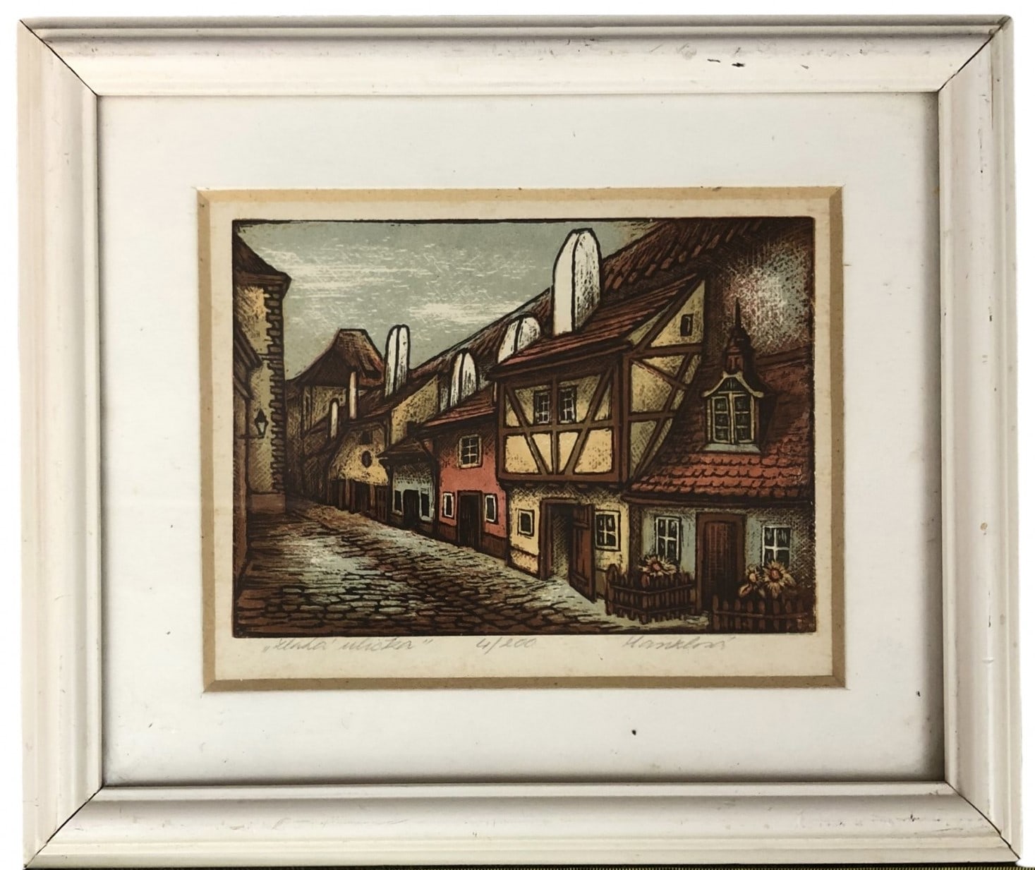 Part of a matching pair of Slovakian colored lithographs originally sold in Trencin, Slovakia. The litho is hand signed, titles and numbered in pencil in the lower border. Edition #38 of 200.
