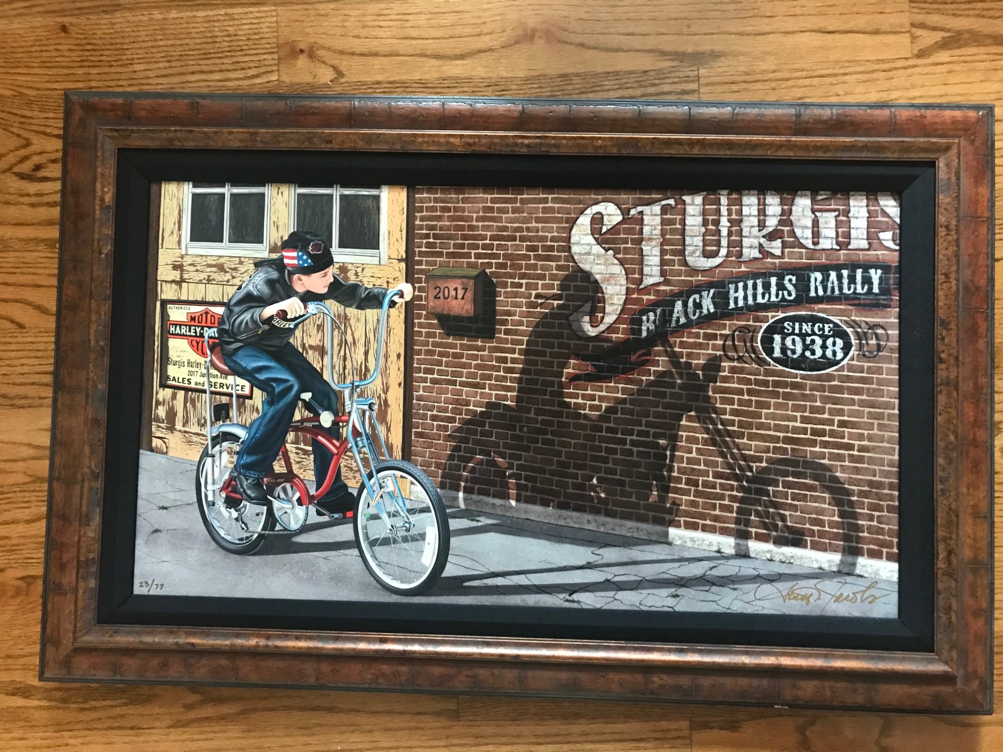 'The Riding's on the Wall' is a giclee on canvas hand signed and numbered by the artist. This is an edition #23 of 77. This art was purchased directly from the artist and professionally framed by the Scott Jacobs Studio. A Certificate of Authenticity is included.