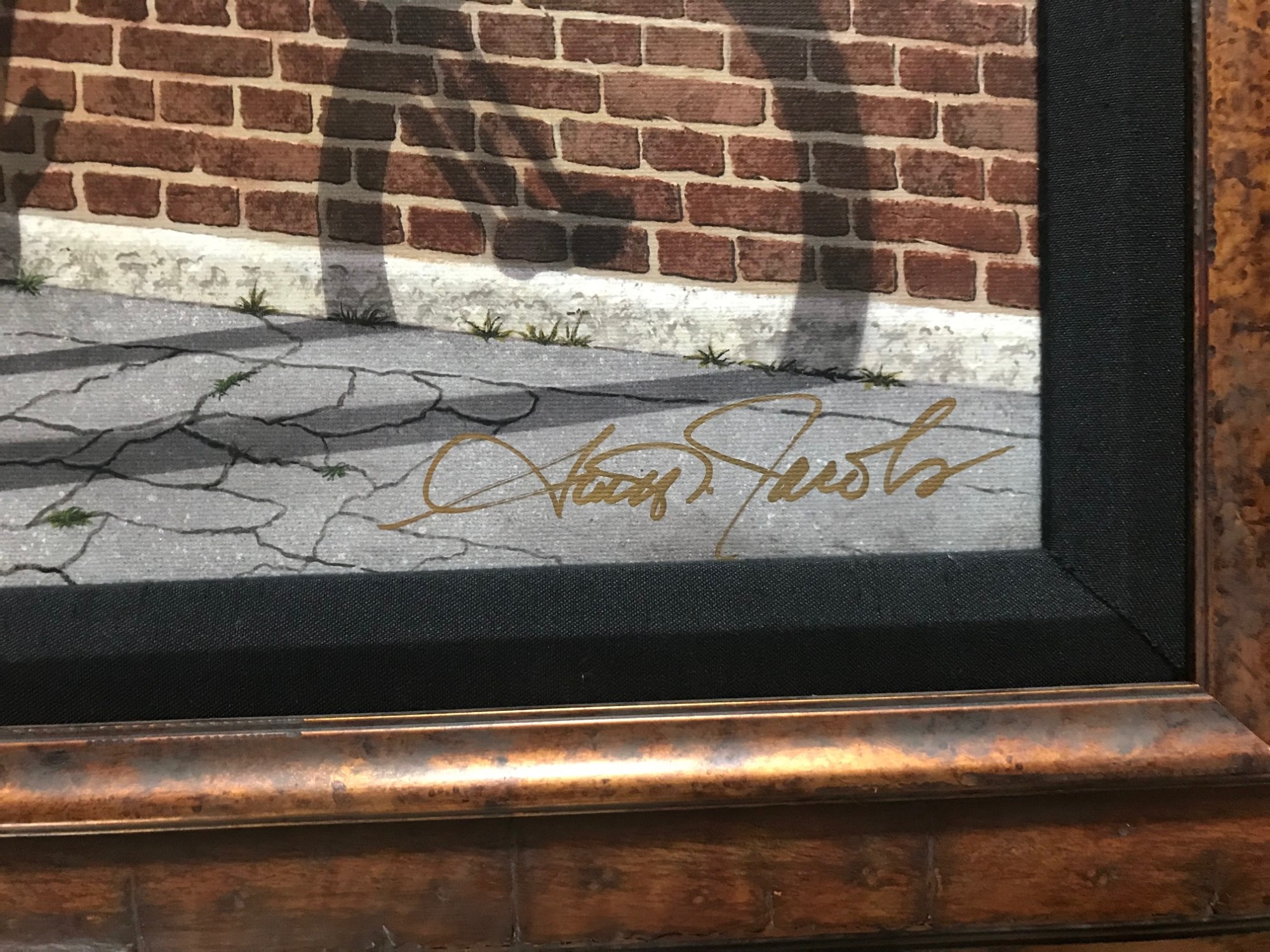 'The Riding's on the Wall' is a giclee on canvas hand signed and numbered by the artist. This is an edition #23 of 77. This art was purchased directly from the artist and professionally framed by the Scott Jacobs Studio. A Certificate of Authenticity is included.