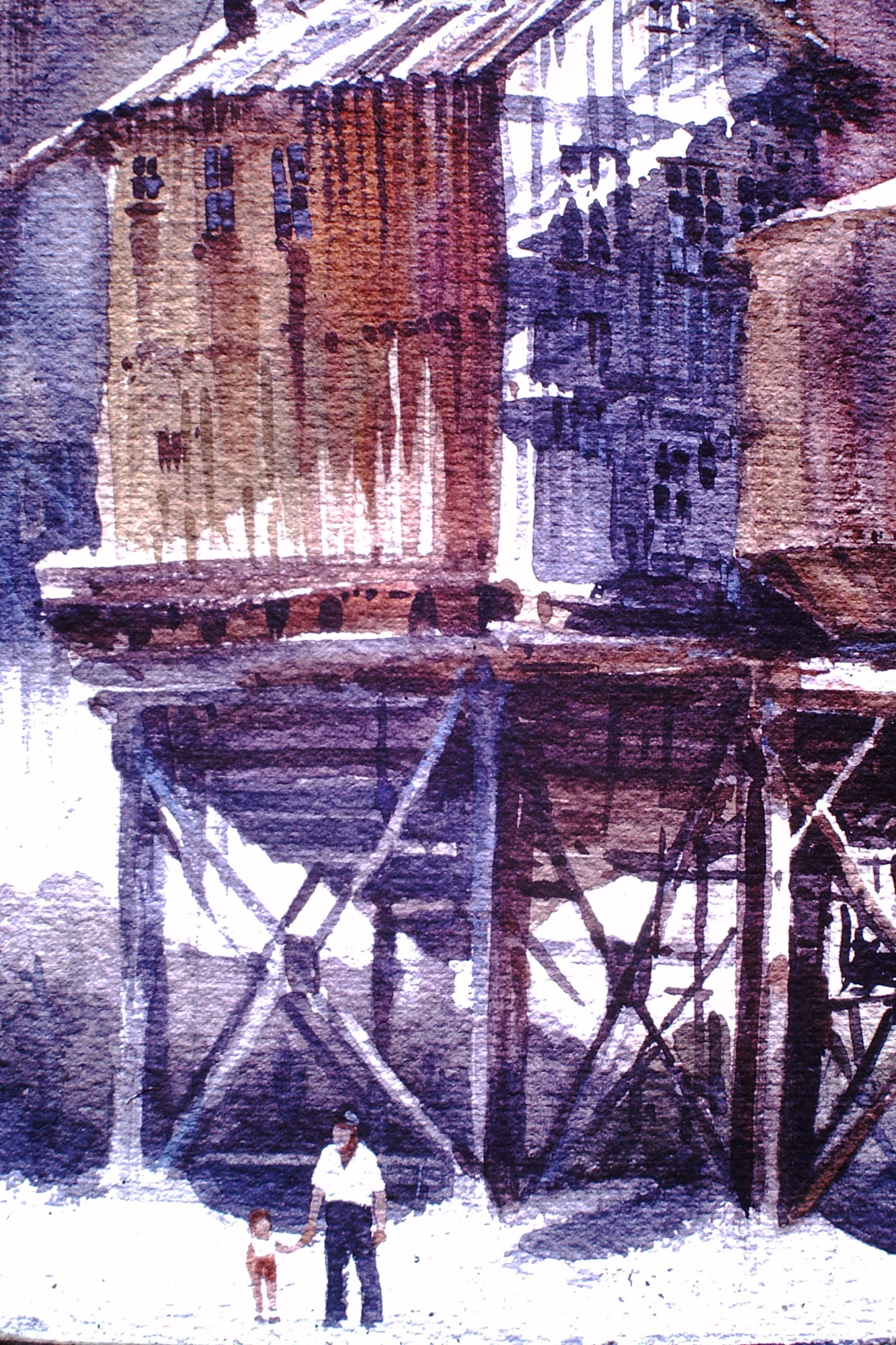 Sam Solomon Sr. and Gaylen Solomon beneath large mining structure.
