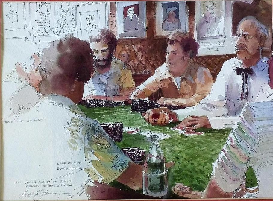Treetop Strauss, Gabe Kaplan, Dewey Tomko. Painted on location at Binions Hotel Casino, Las Vegas, Nevada.