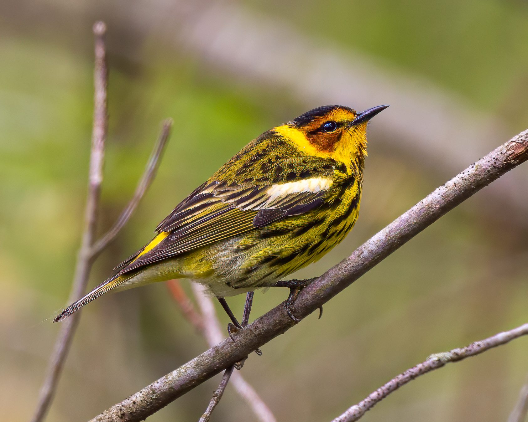 The Cape May warbler (Setophaga tigrina) is a species of New World warbler. It breeds in northern North America. Its breeding range spans all but the westernmost parts of southern Canada, the Great Lakes region, and New England. It is migratory, wintering in the West Indies. This species is a very rare vagrant to western Europe, with two records in Britain as of October 2013. The English name refers to Cape May, New Jersey, where George Ord collected the specimen that was later described by Alexander Wilson. (Wikipedia)
