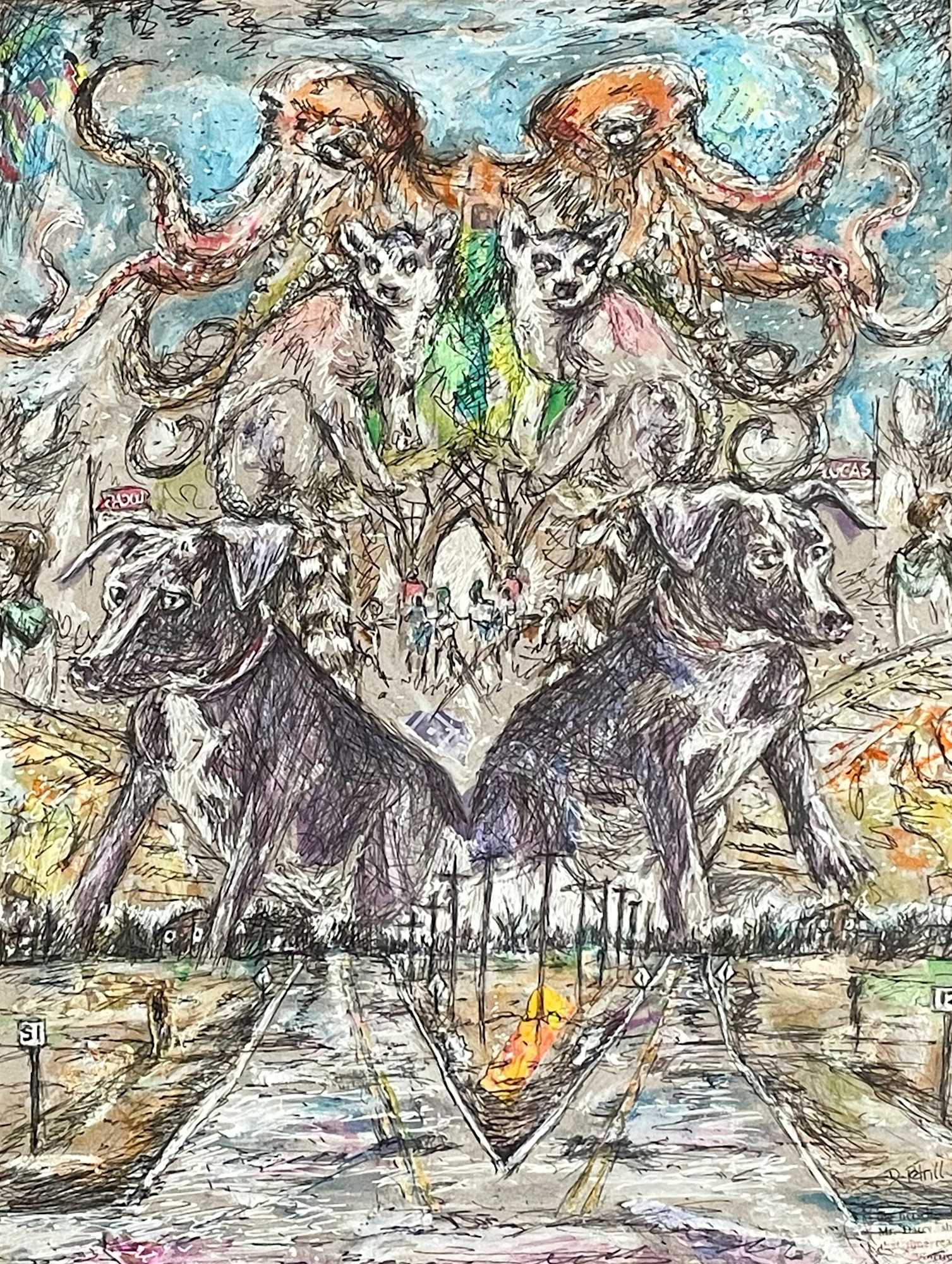 A series of Mixed Media Drawings where I am using former reference photos from past paintings, drawings, and projects as inspiration. The images are flipped to create a symmetrical design and layered upon each other, much like a visual landscape.