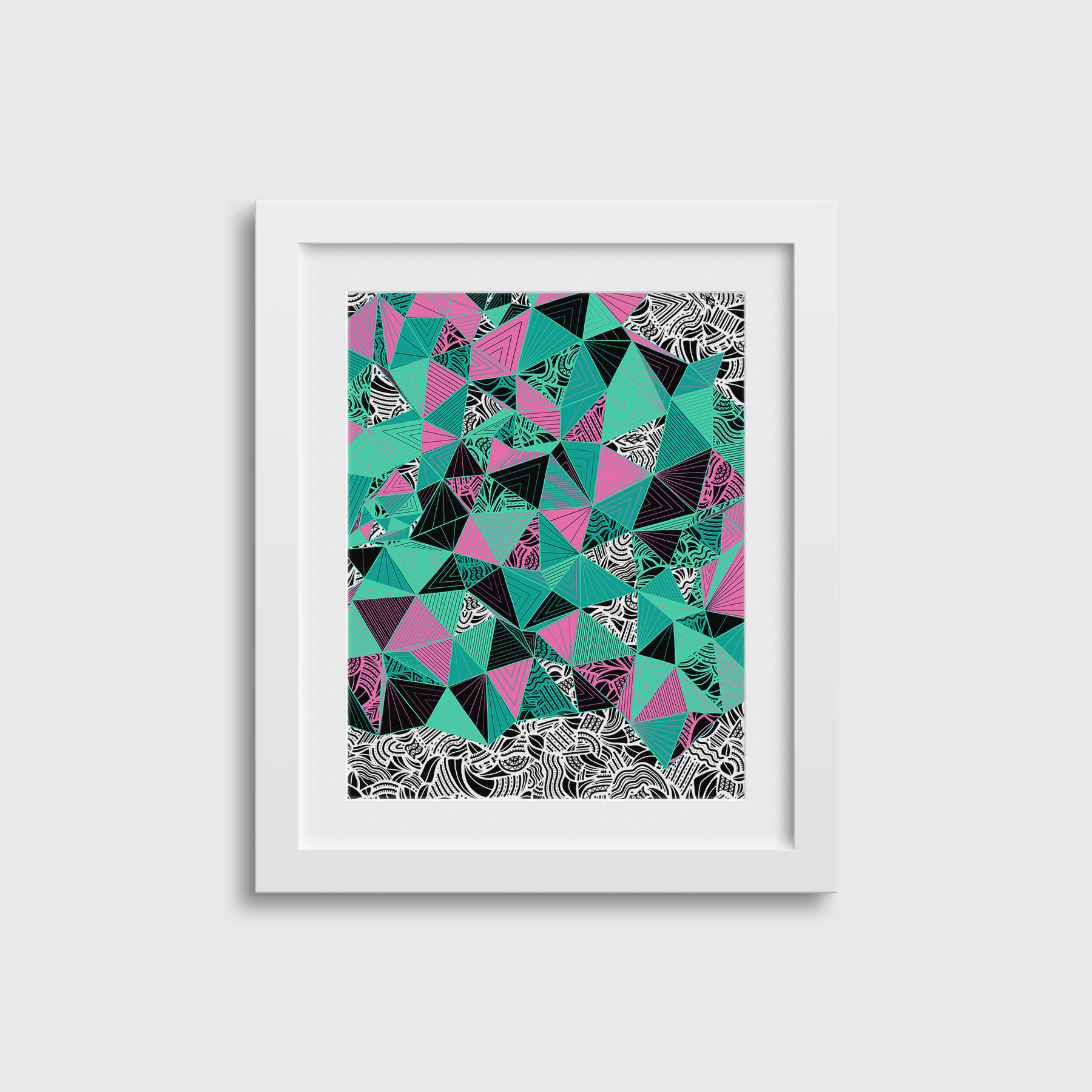 Created by visual artist and contemporary surface designer gneural (Debbie Clapper) and creative technologist Cacheflowe (Justin Gitlin), made for you, the contemporary art collector. This print is part of a series of one-of-a-kind contemporary art prints for home or office. Each print in this series is a snapshot from the duo’s "Conscious Growth" interactive digital mural in Snowmass, CO. Every image in this series is an individual moment in the "Conscious Growth" timeline, never to be repeated.