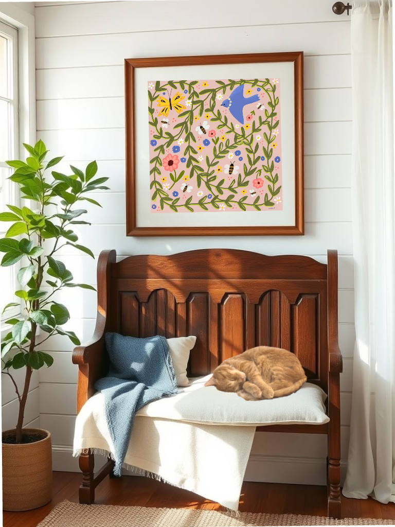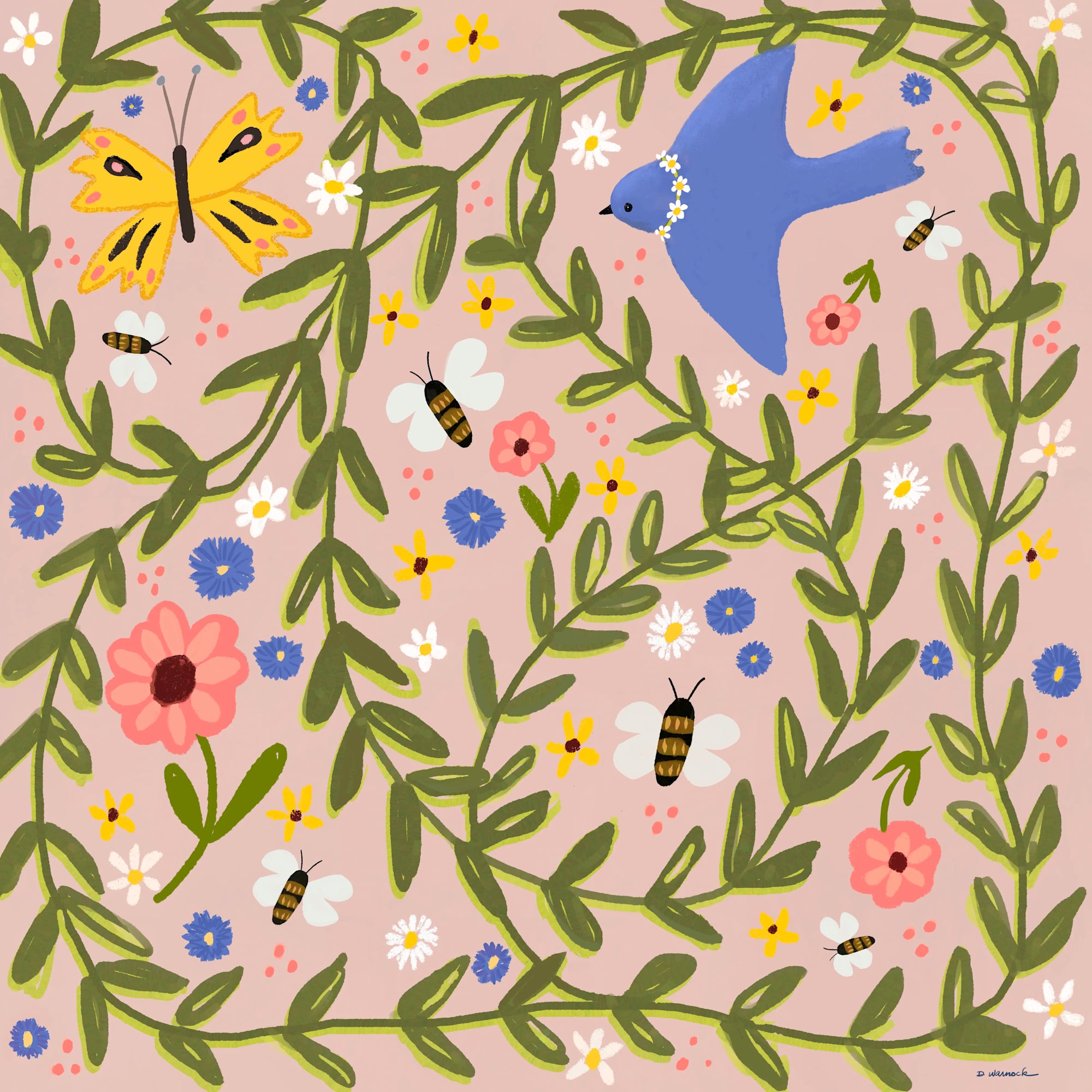 “Happy Springtime in Pink” was such a joy for me to create. I was singing a little song, “Happy, Happy Springtime” in my head the whole time I was painting it! I had learned the song long ago as a little preschool girl in Sunday School at Dalewood Baptist Church in Nashville, TN. The windows of our classroom were wide open with warm spring breezes making the sheer white curtains flutter. There was a creek a few feet from the window that gurgled happily as we sang. Those happy childhood memories are embedded deeply in this painting! I hope you can feel it too!