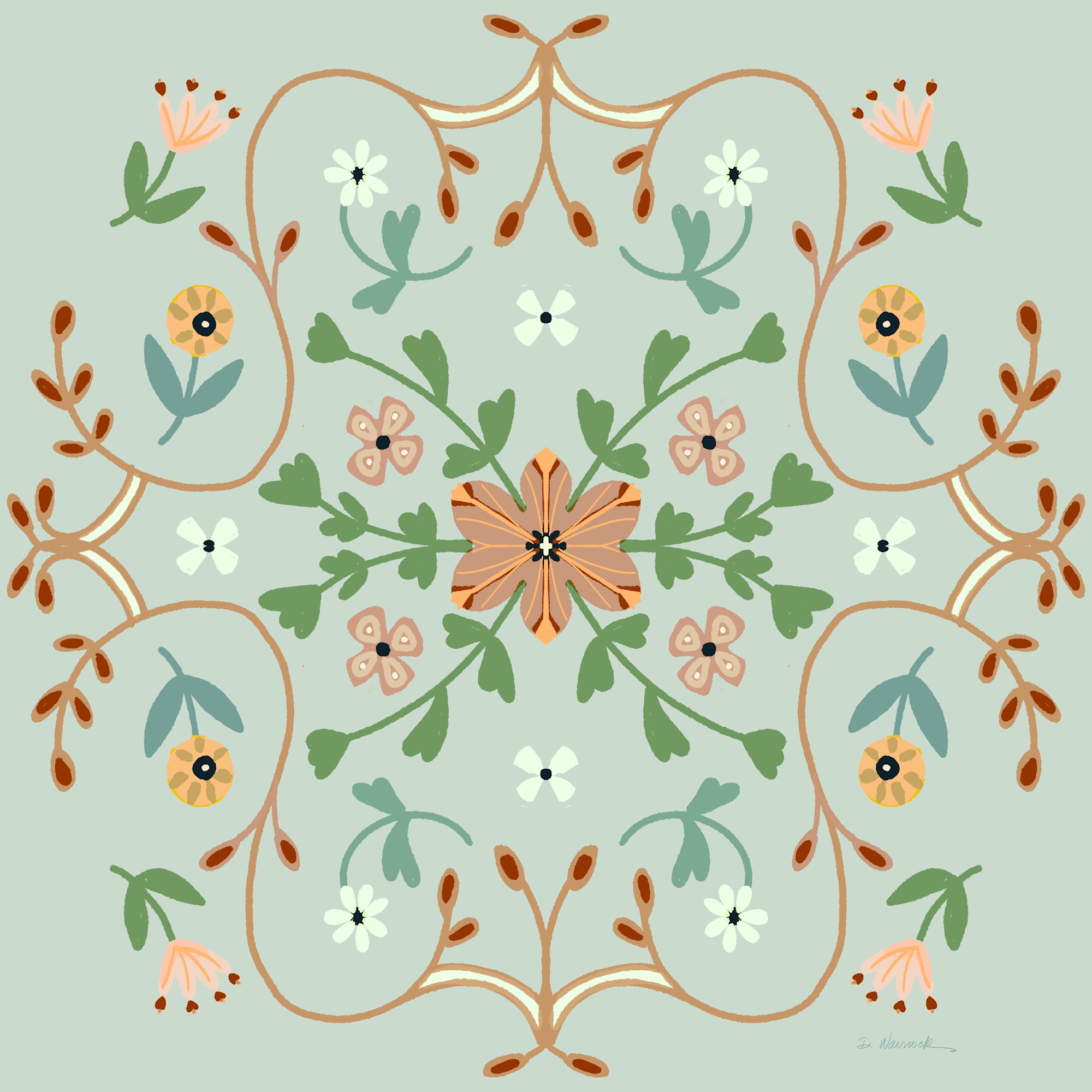 A calm palette of delicate fall flowers seem to sway in symmetry in ”The Autumn Flower Dance”.