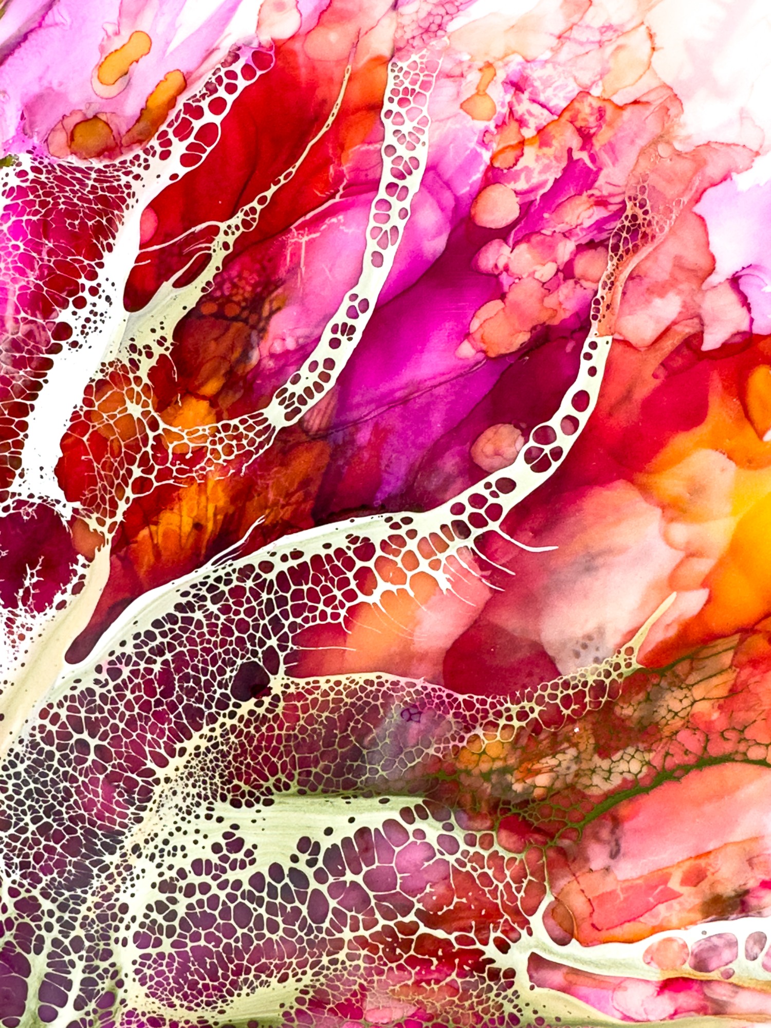 Fun and whimsical flowers. Encaustic medium with inks and shellac