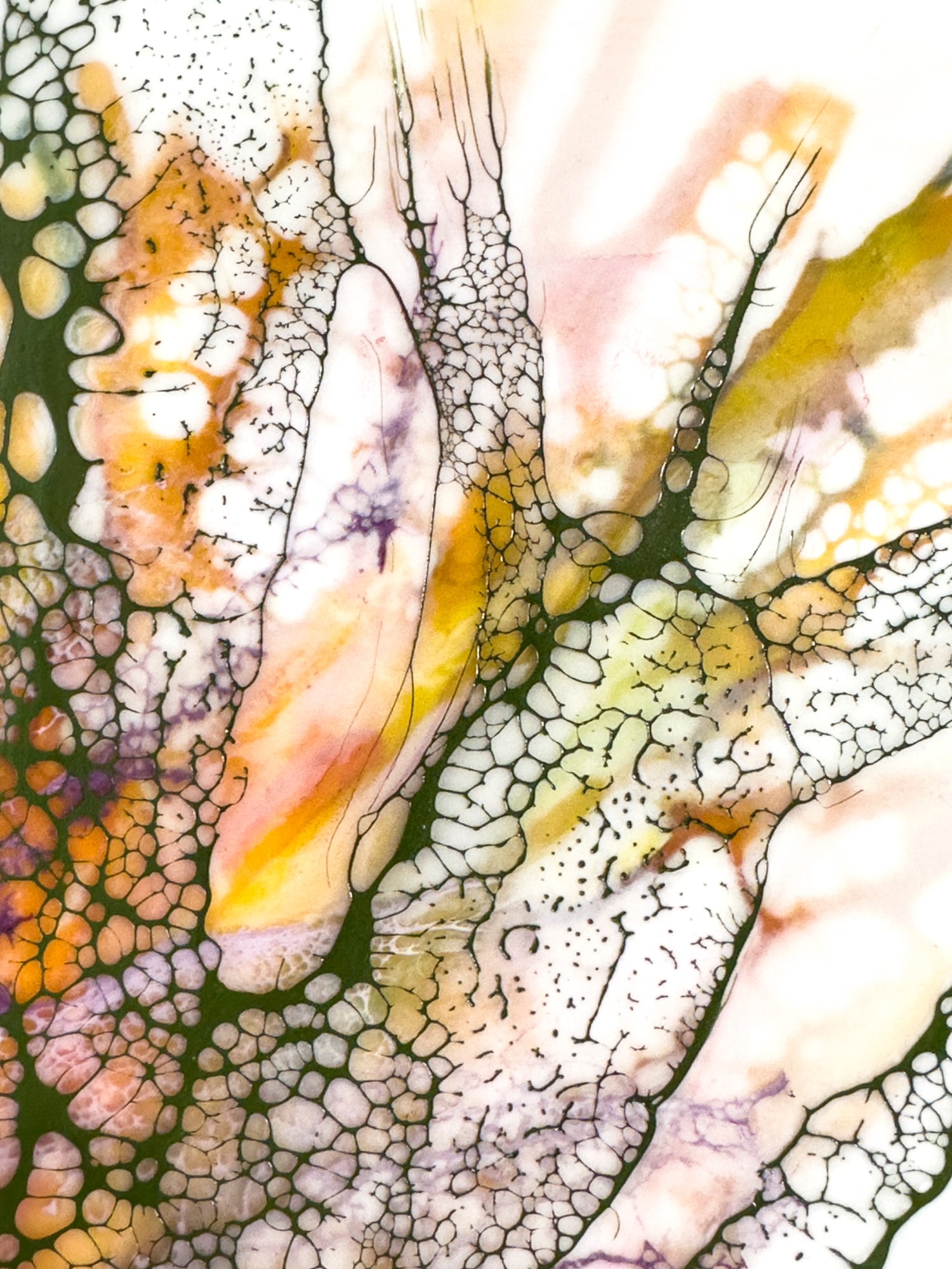 Fun and whimsical flowers. Encaustic medium with inks and shellac