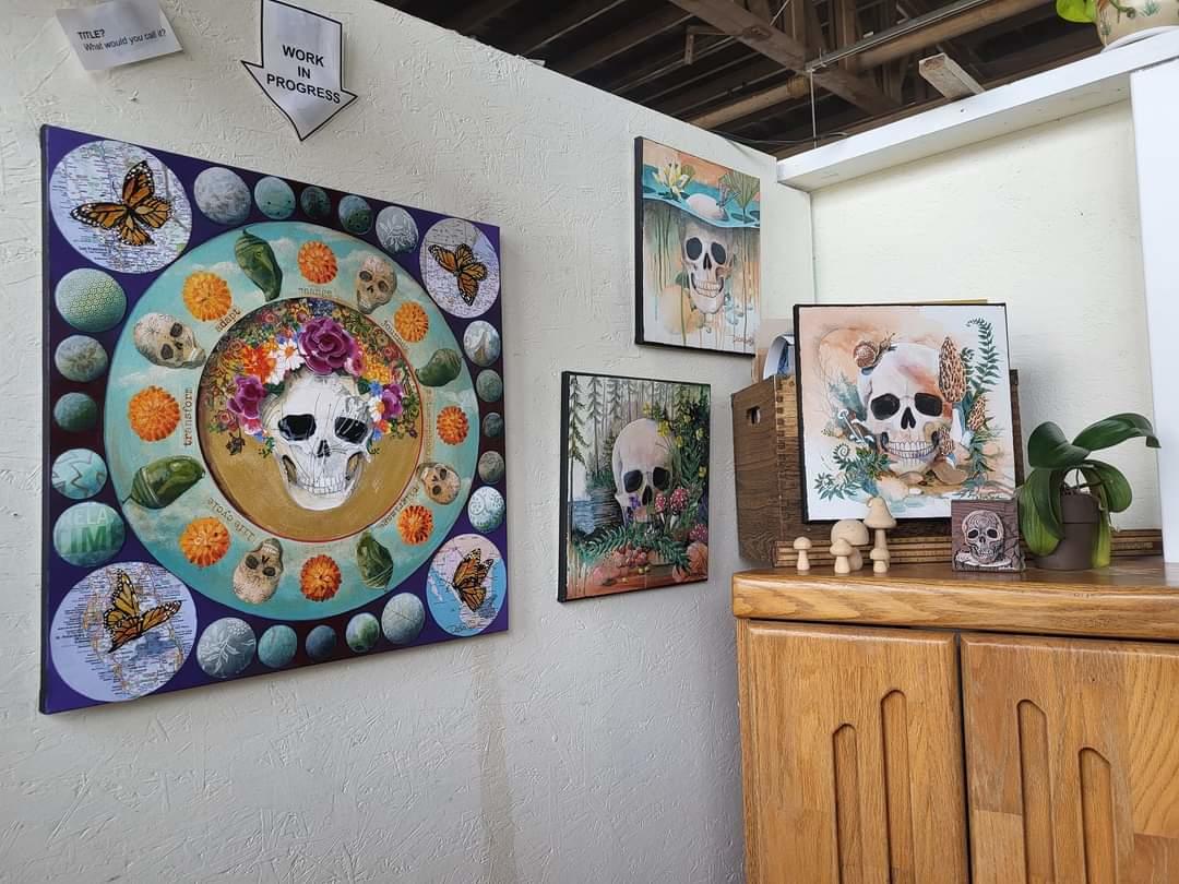 - Collections: Butterflies, Mixed media with maps, Skulls