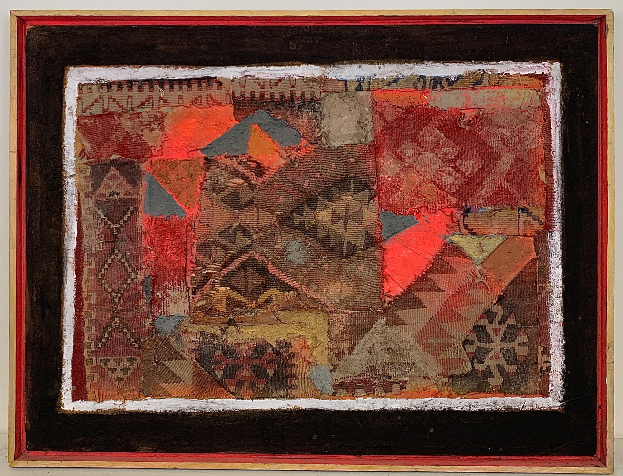 mixed media assemblage with frame built in as part of the piece
